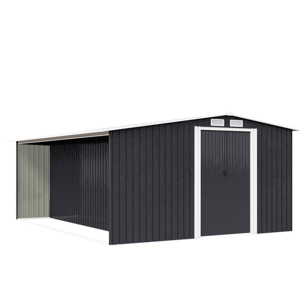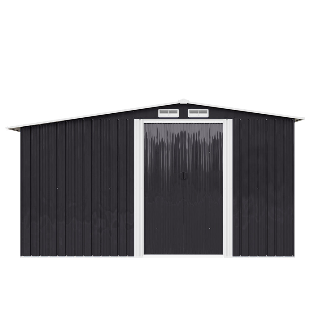 10ft x 8ft Metal Garden Tools Shed With Firewood Log Storage,Dark Grey