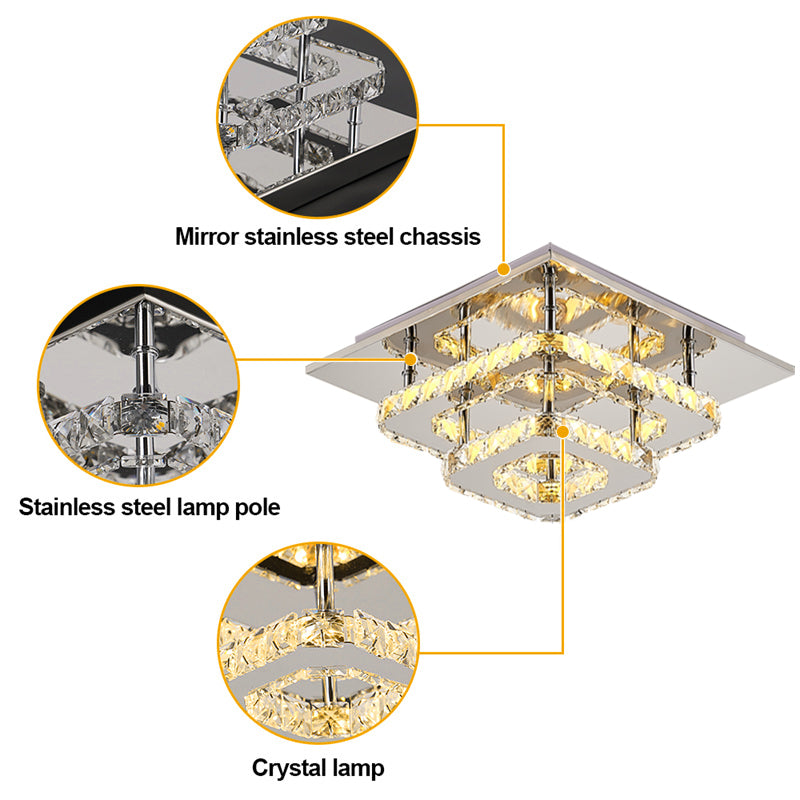 36W LED Ceiling Light Crystal Chandelier Pendant Lamp Dimmable with Remote