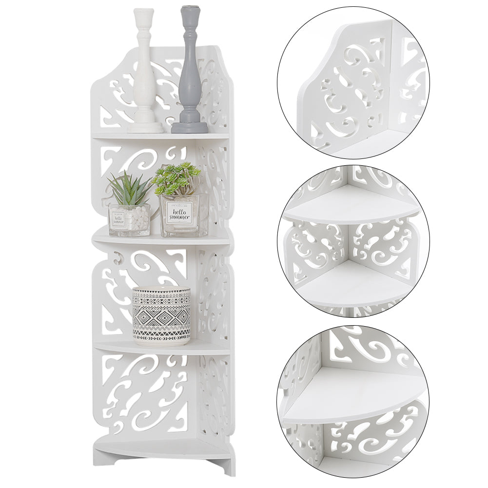 4-Tier Bathroom Corner Rack Storage Units with Hollow Pattern 80cm H