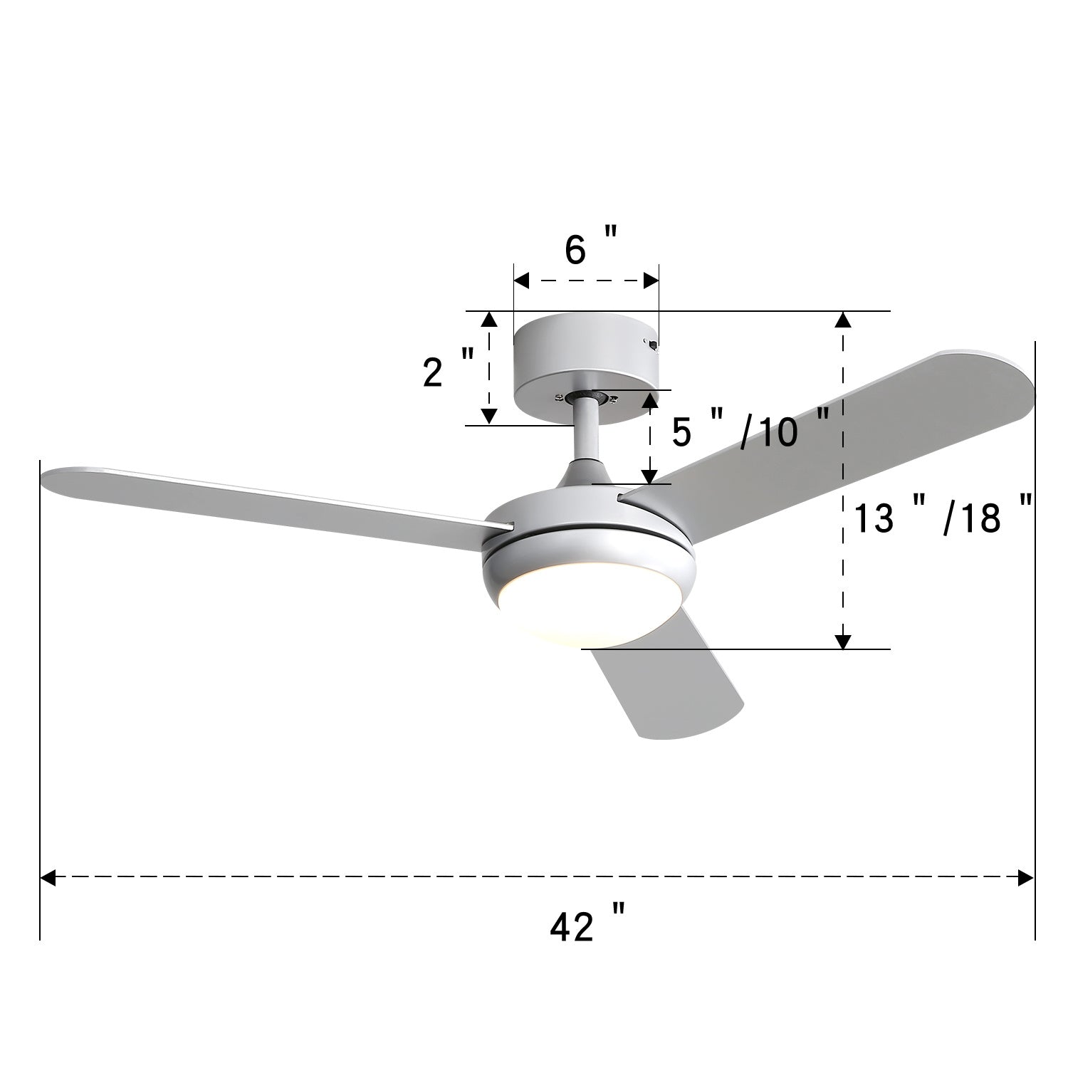 42 Inch Silver Ceiling Fan with LED Light Kit 3 Blades and Remote Control
