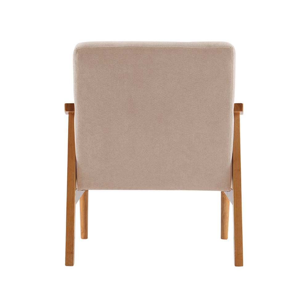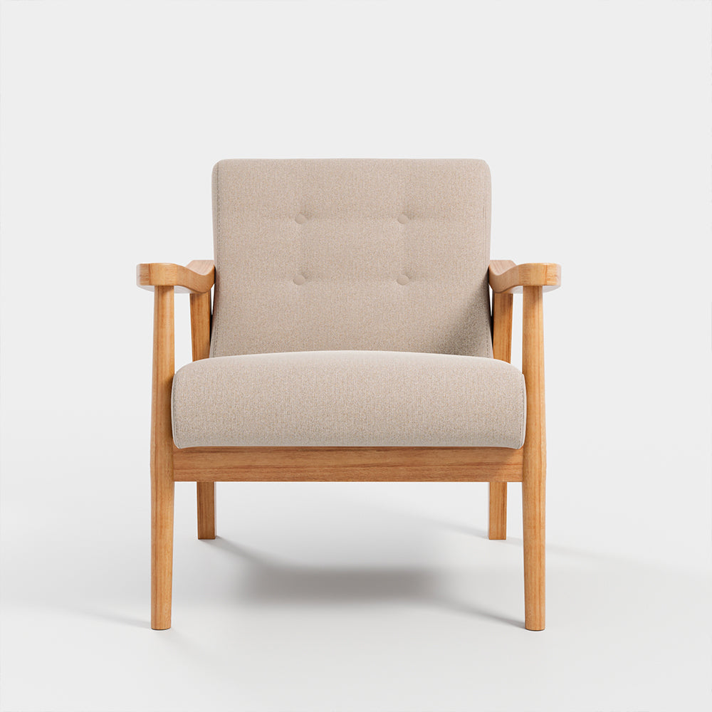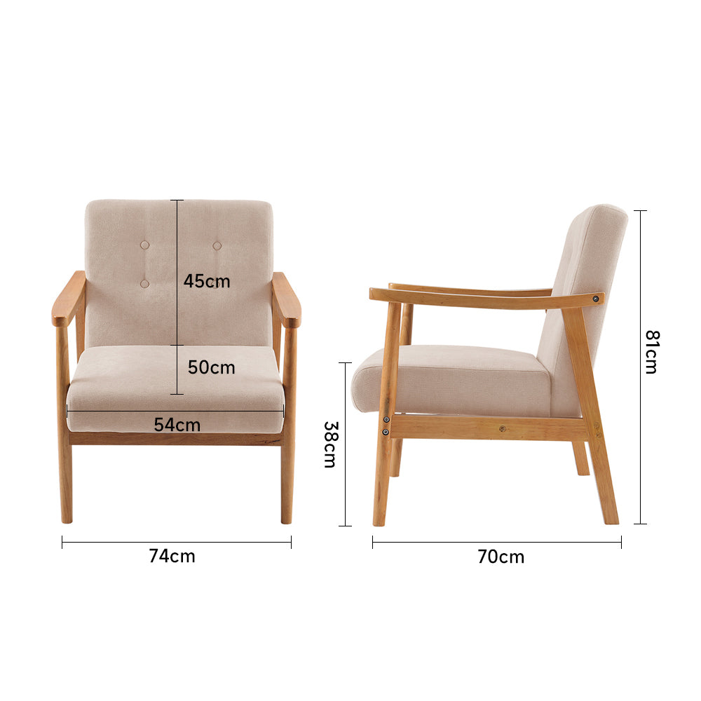 Accent Linen Fabric Buttoned Armchair Wooden Frame Beige