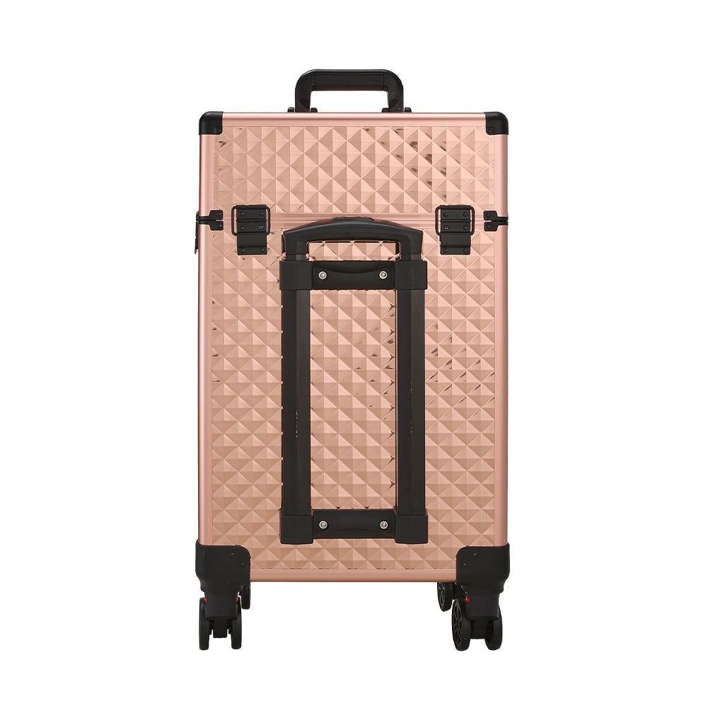 Aluminum 3 in 1 Cosmetic Trolley Case Beauty case on Wheels,Rose Gold