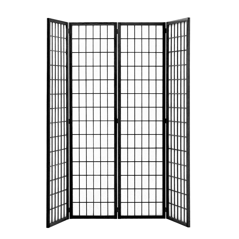 Black 4 Panel Solid Wood Folding Room Divider Privacy Screen