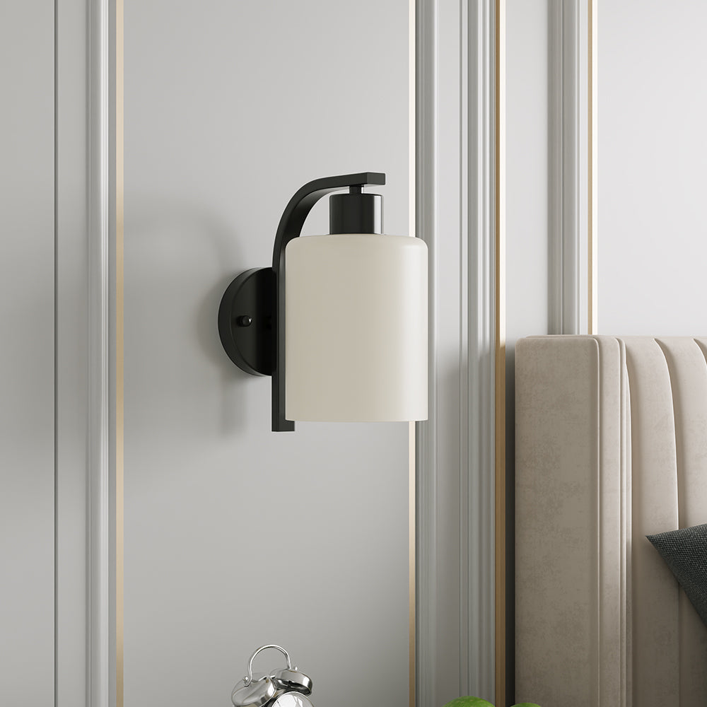 Black Iron Wall Light with Glass Shade