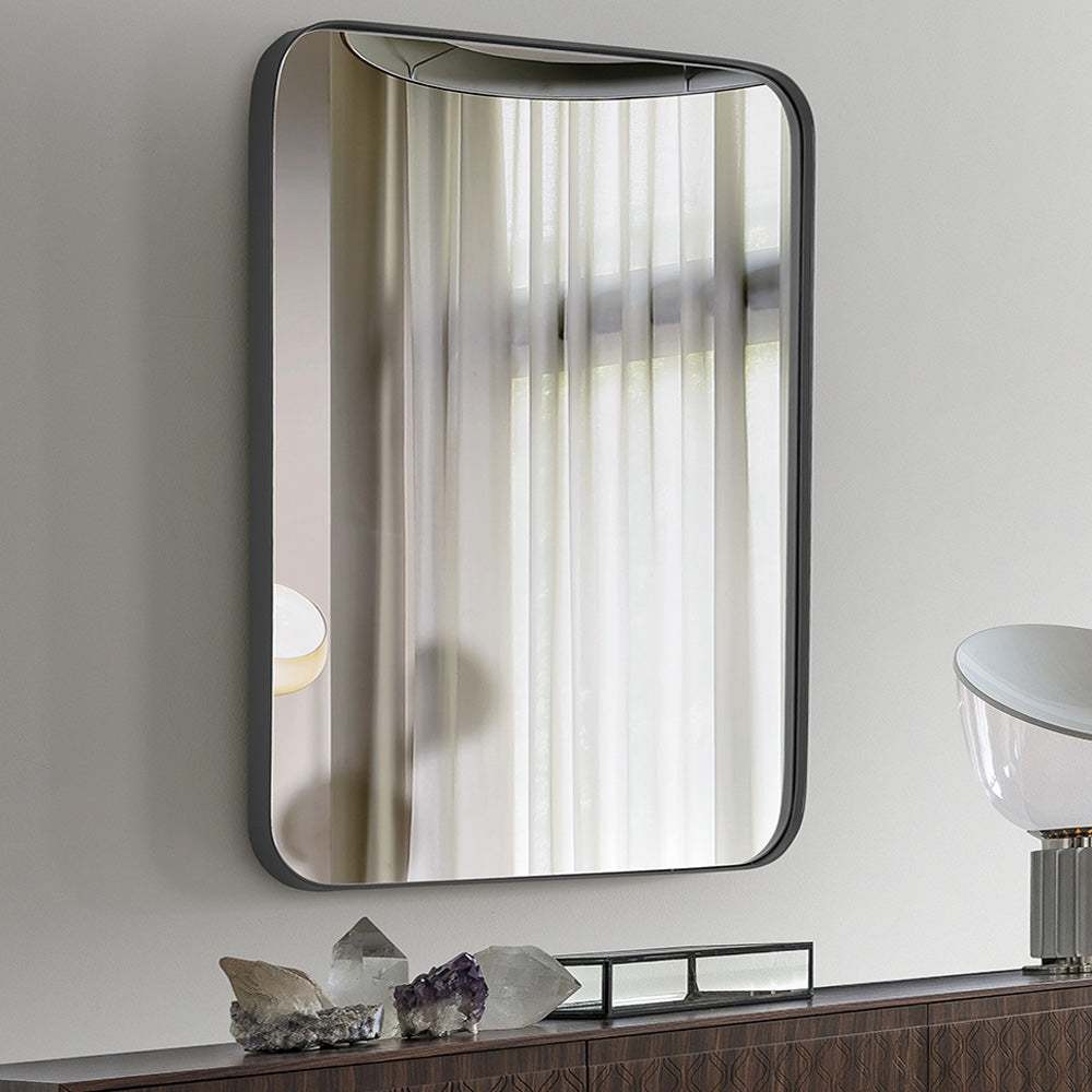 Black Rectangular Metal Framed Wall Mirror Decorative 50x70cm H