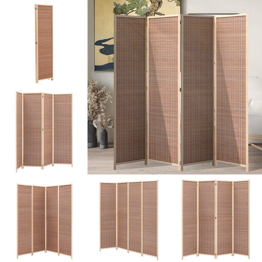 Brown Bamboo Woven 4 Panel Folding Room Divider Privacy Screen