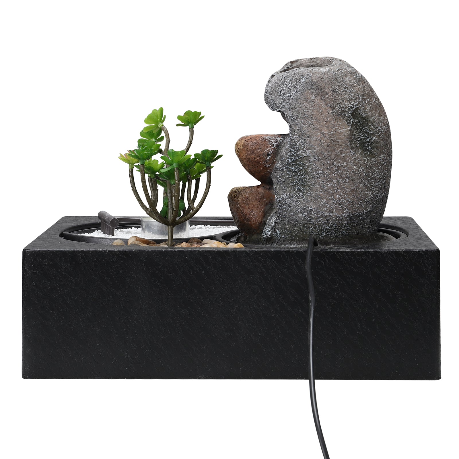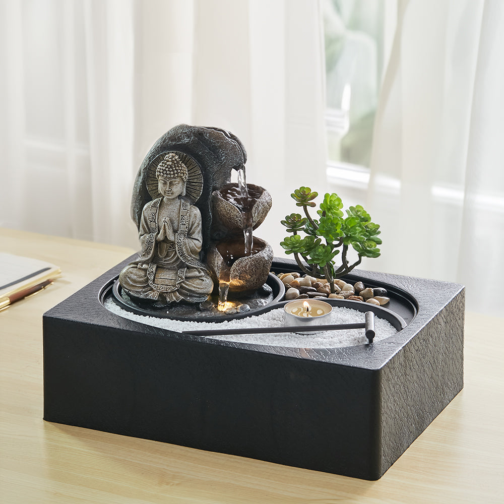 Buddha Zen Tabletop Fountain with LED Lights and Succulents