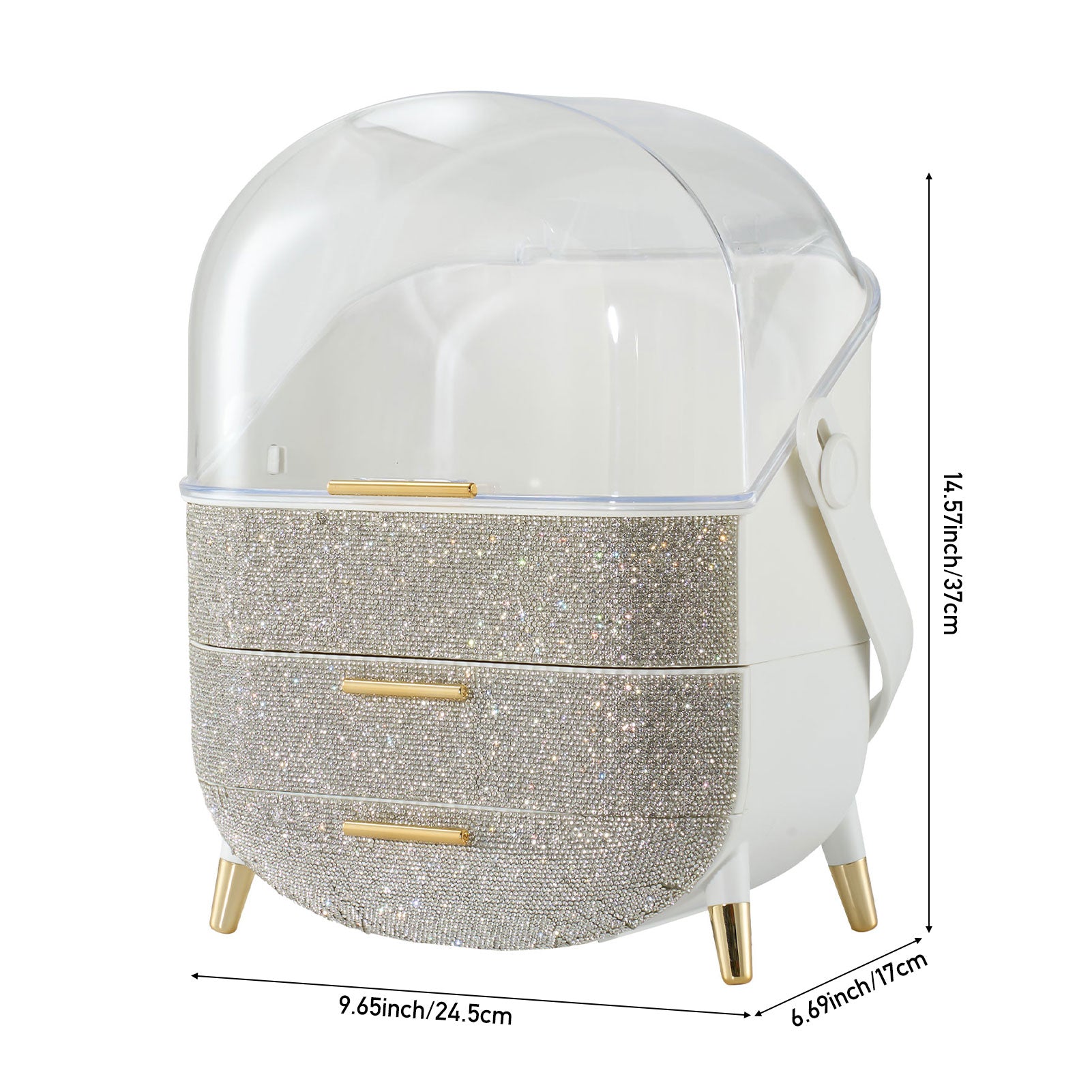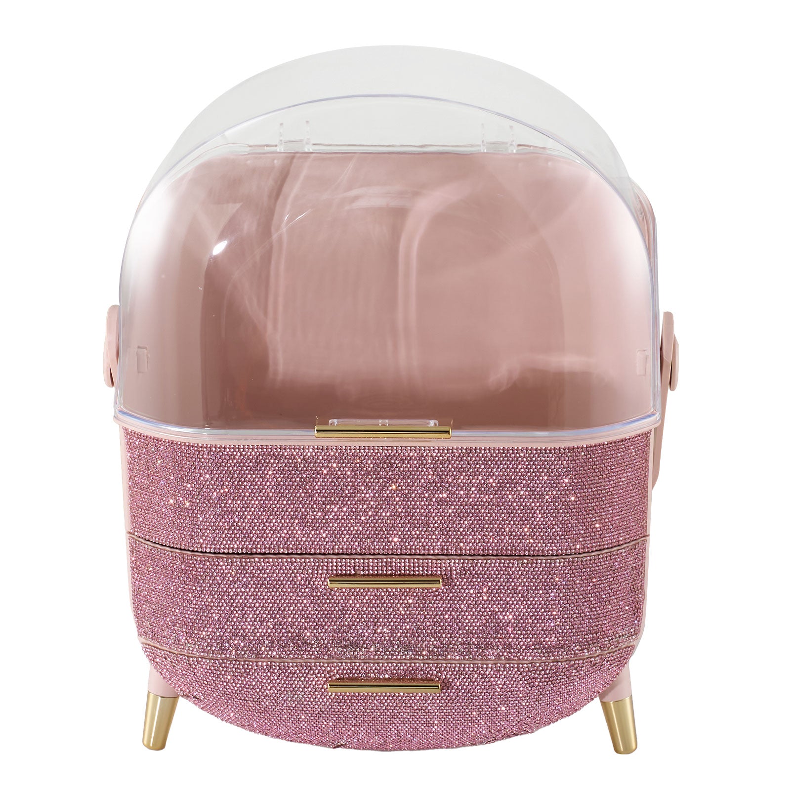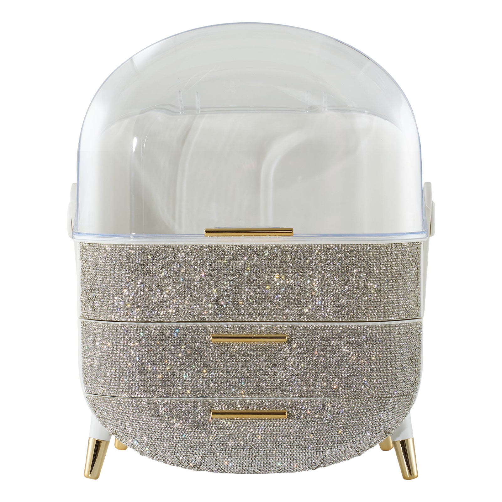 Countertop Portable Oval Makeup Storage Box with Transparent Cover