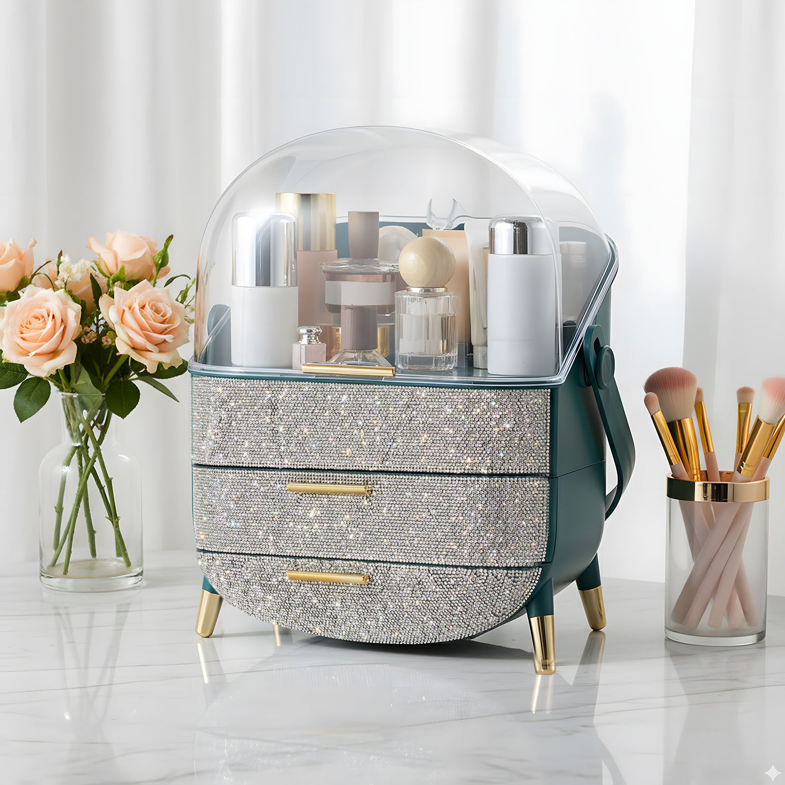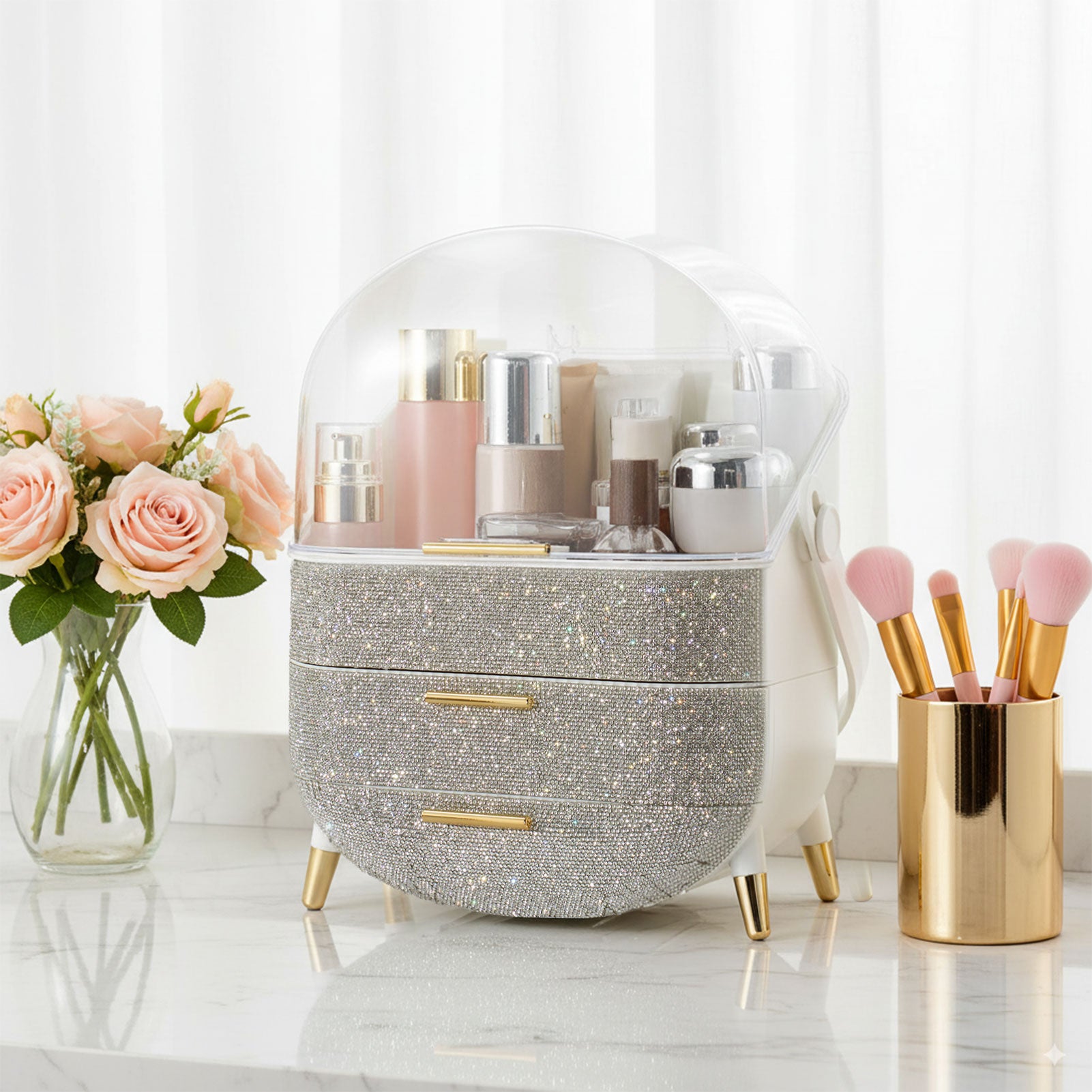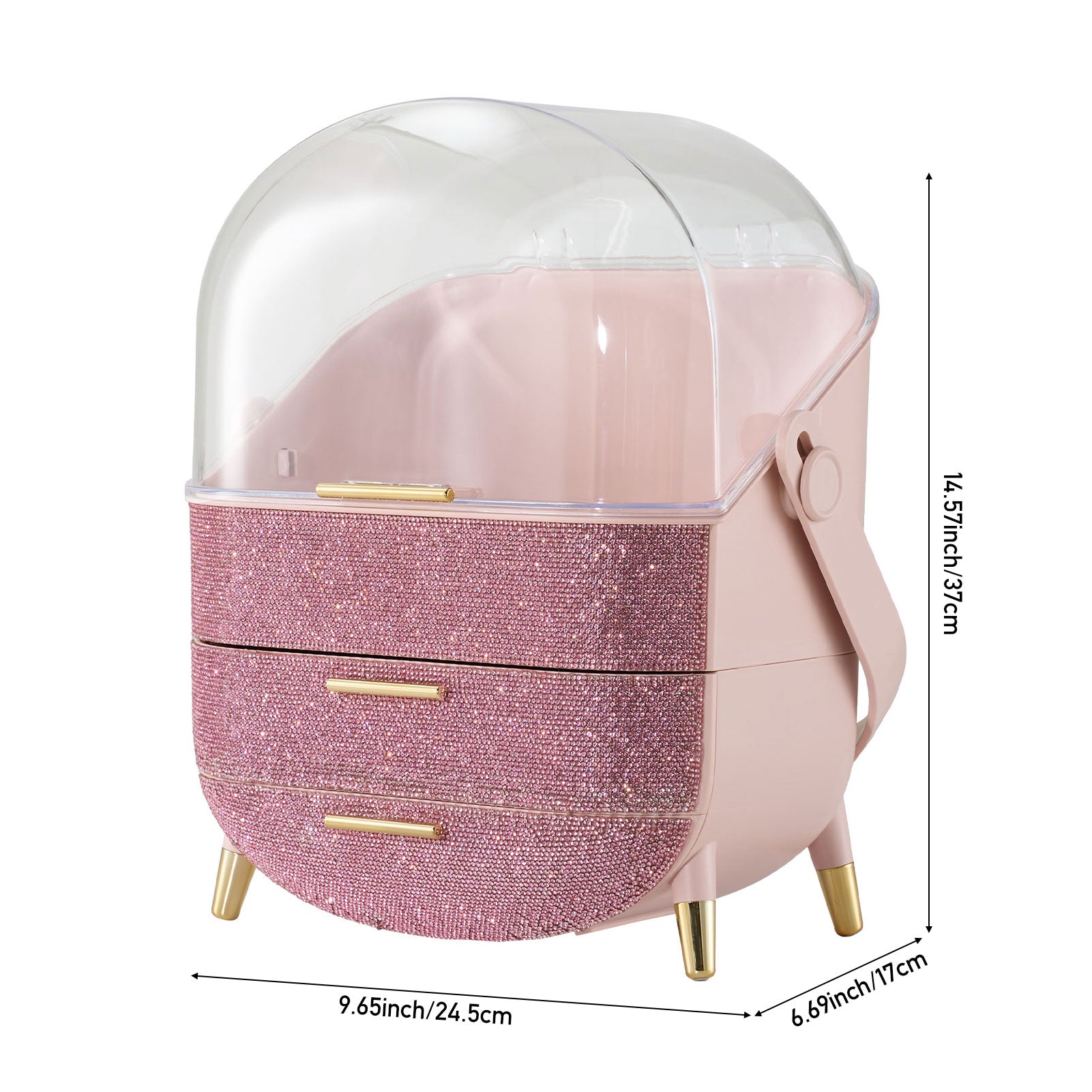 Countertop Portable Oval Makeup Storage Box with Transparent Cover