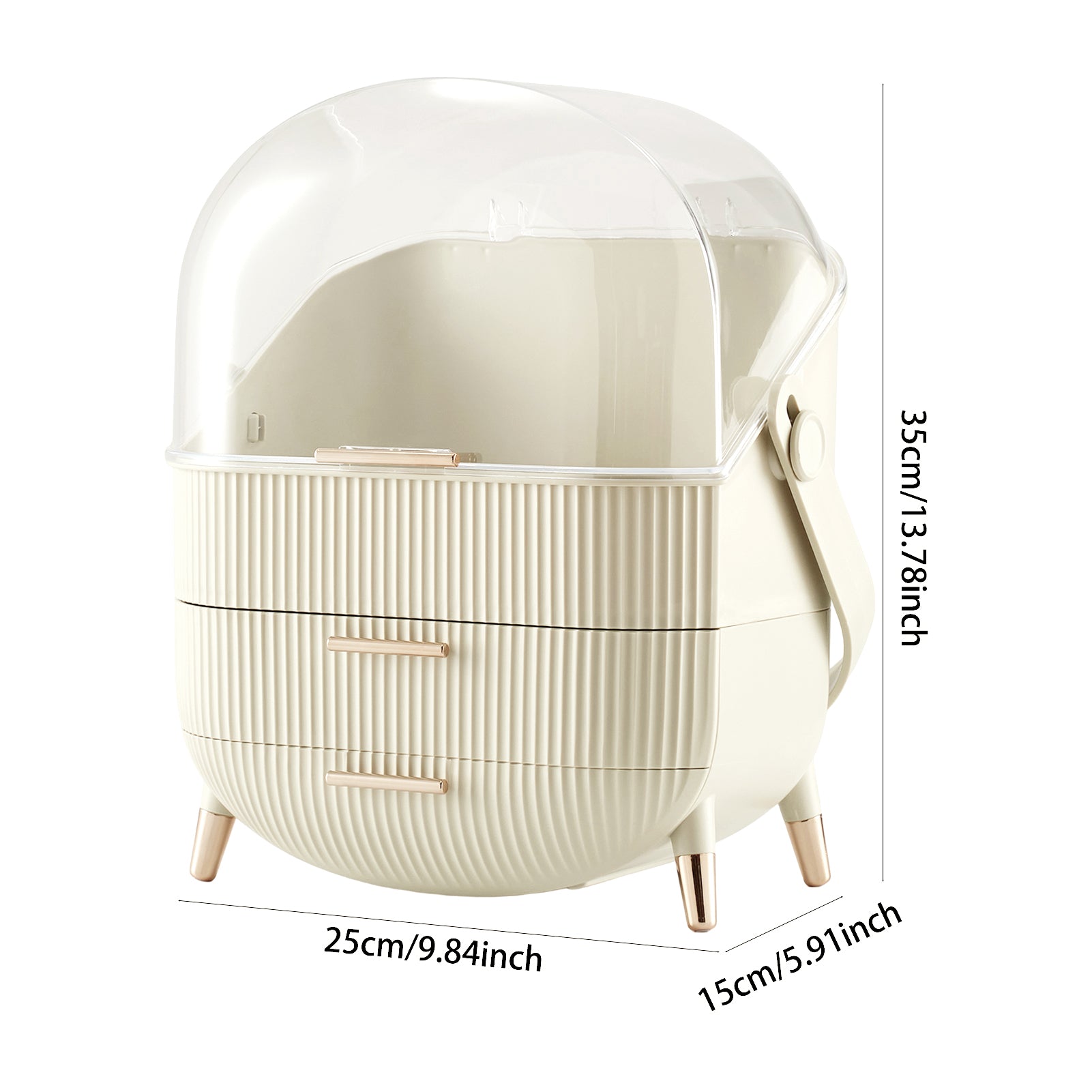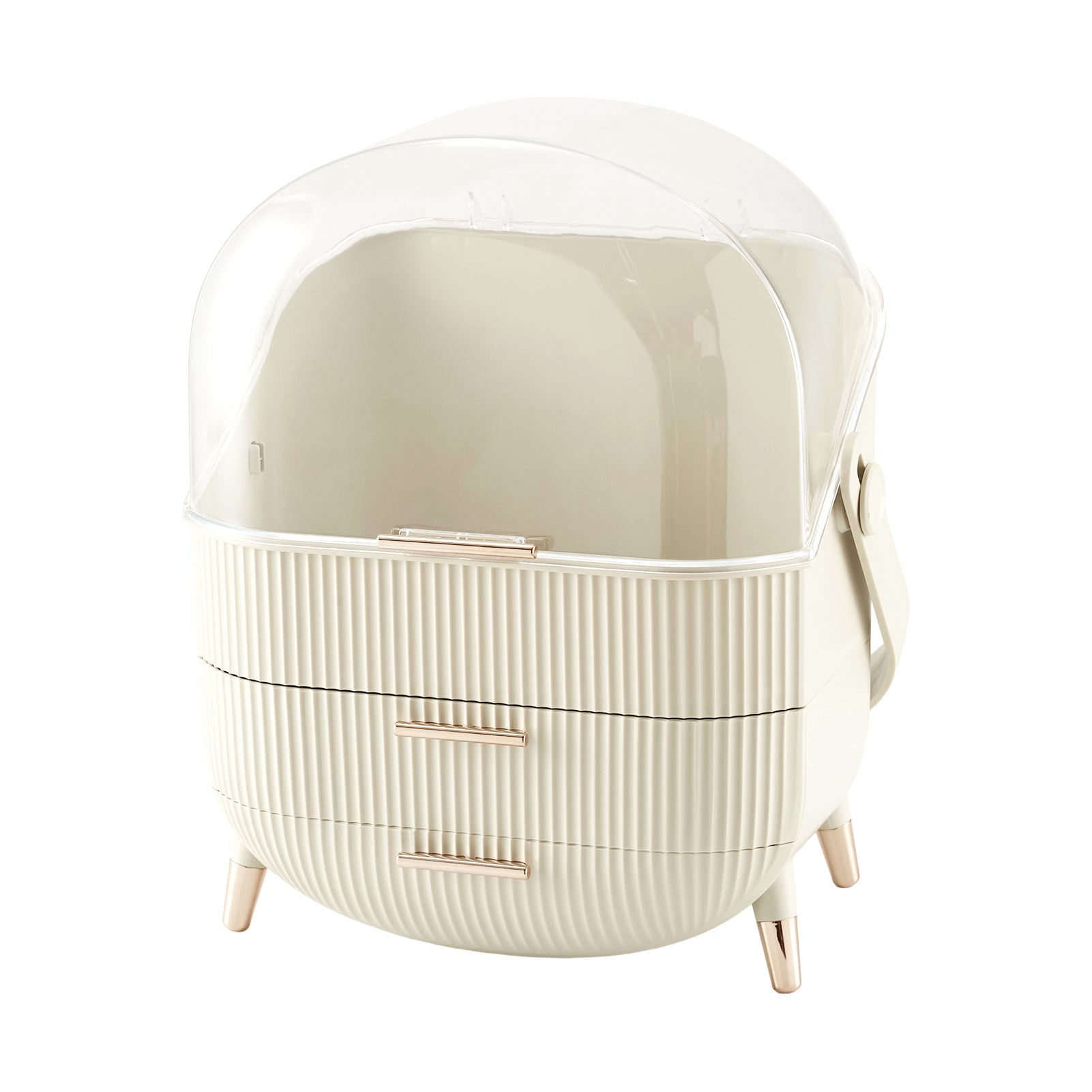 Countertop Portable Oval Makeup Storage Box with Transparent Cover
