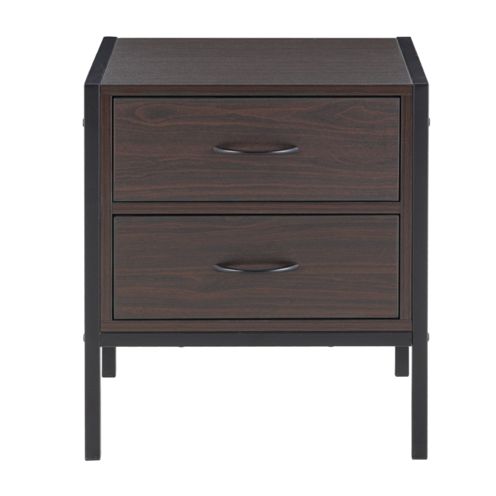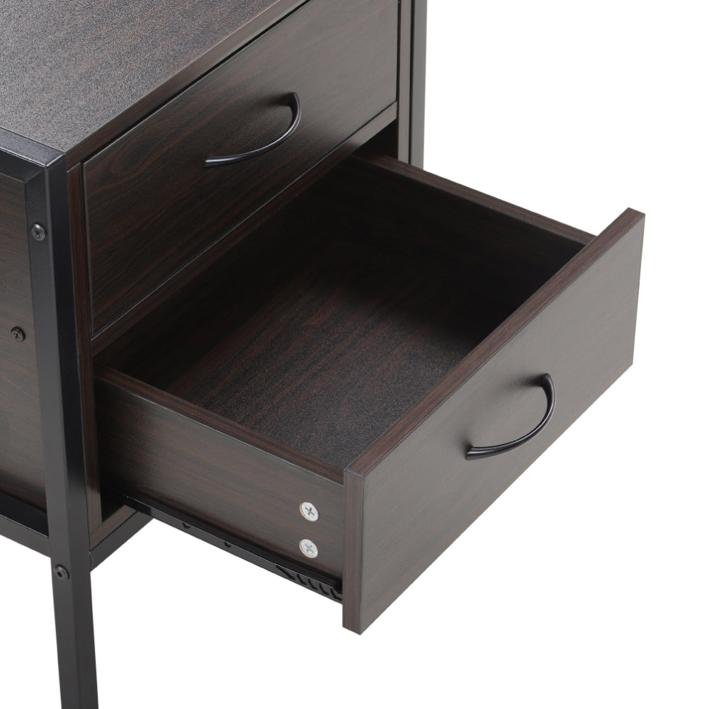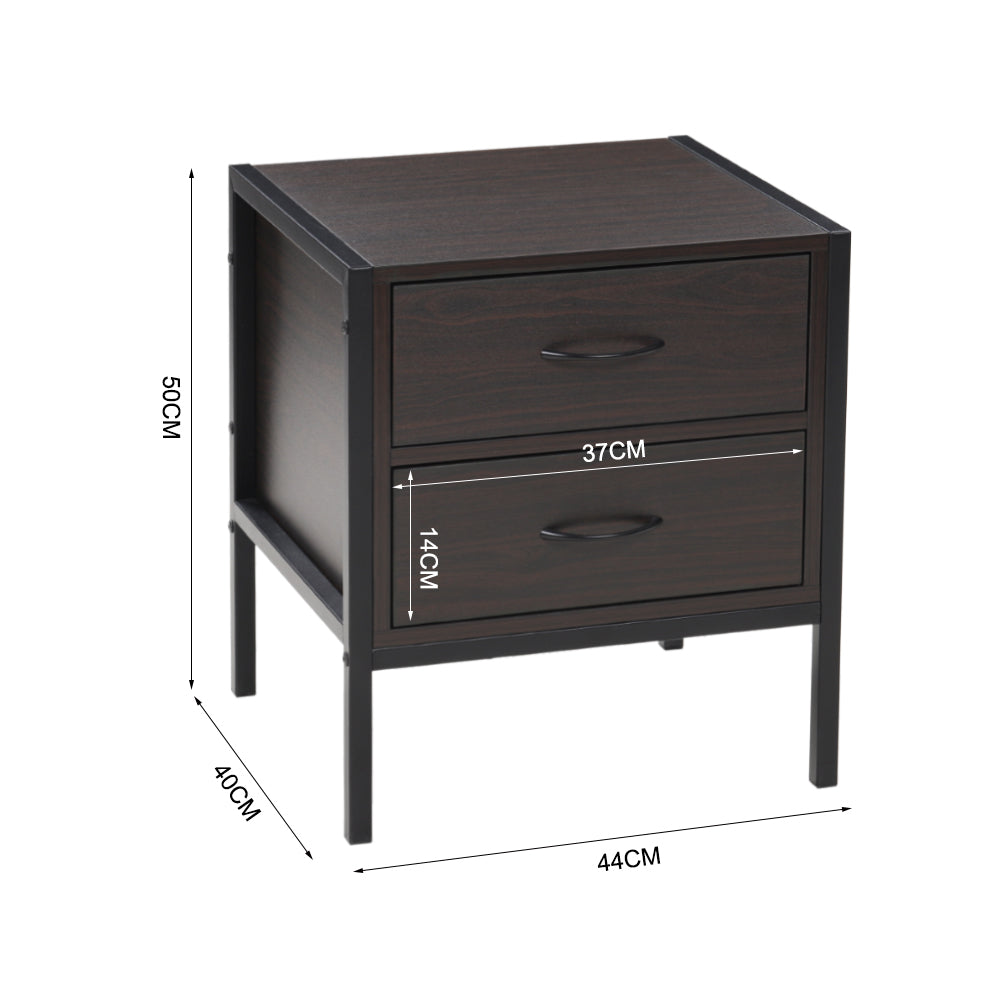 Dark Brown Retro Style Wooden Bedside Cabinet with 2 Drawers 50 cm H