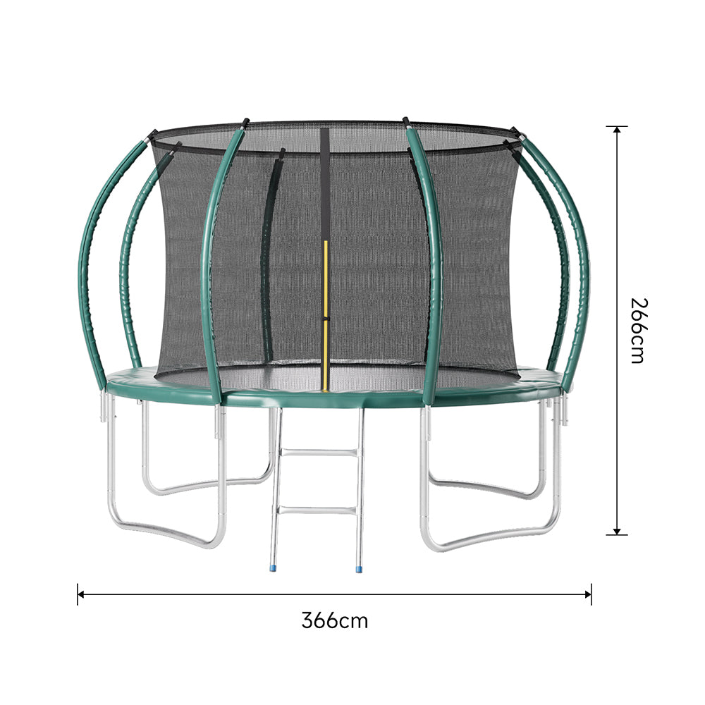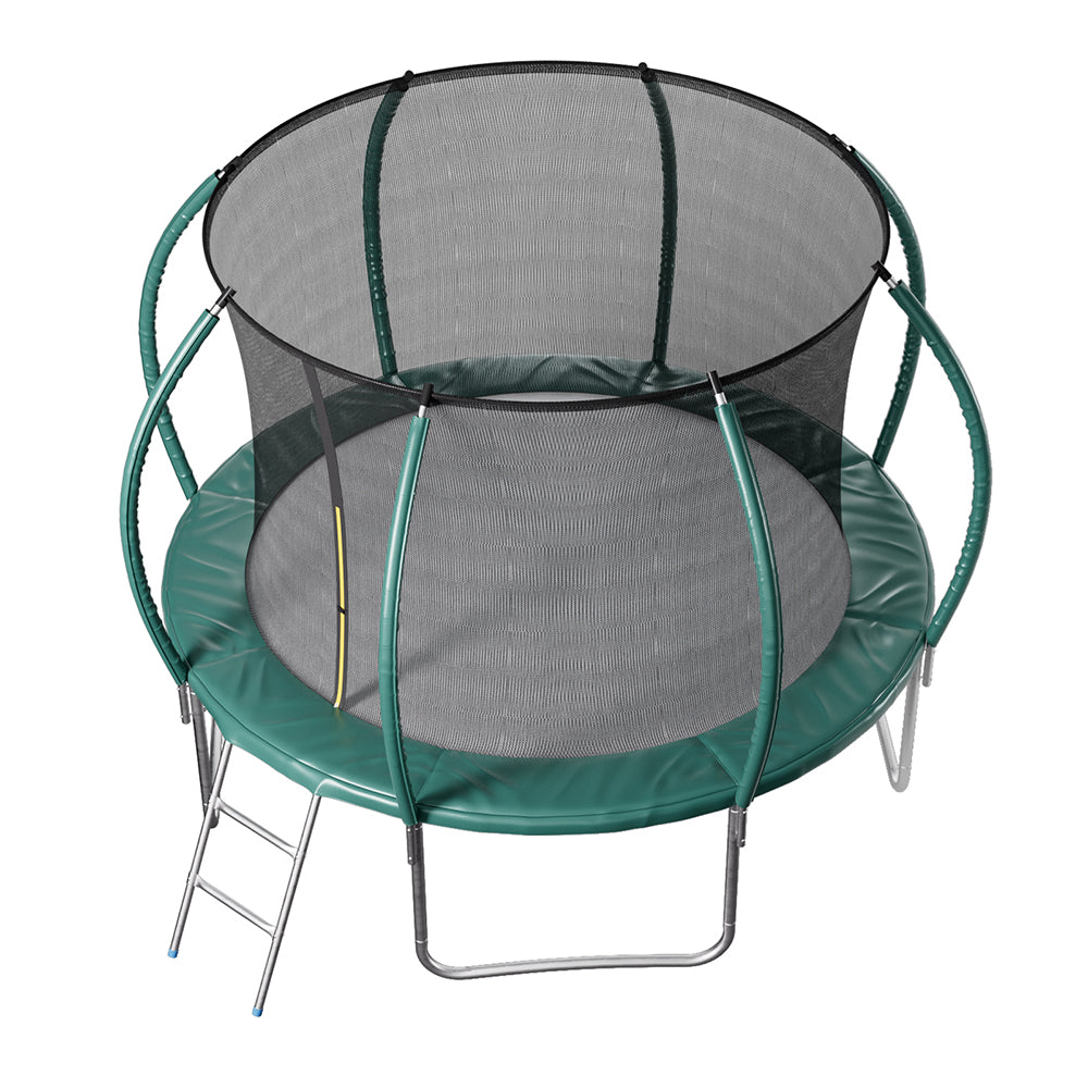Dark Green 12FT Outdoor Enclosure Trampoline with Ladder