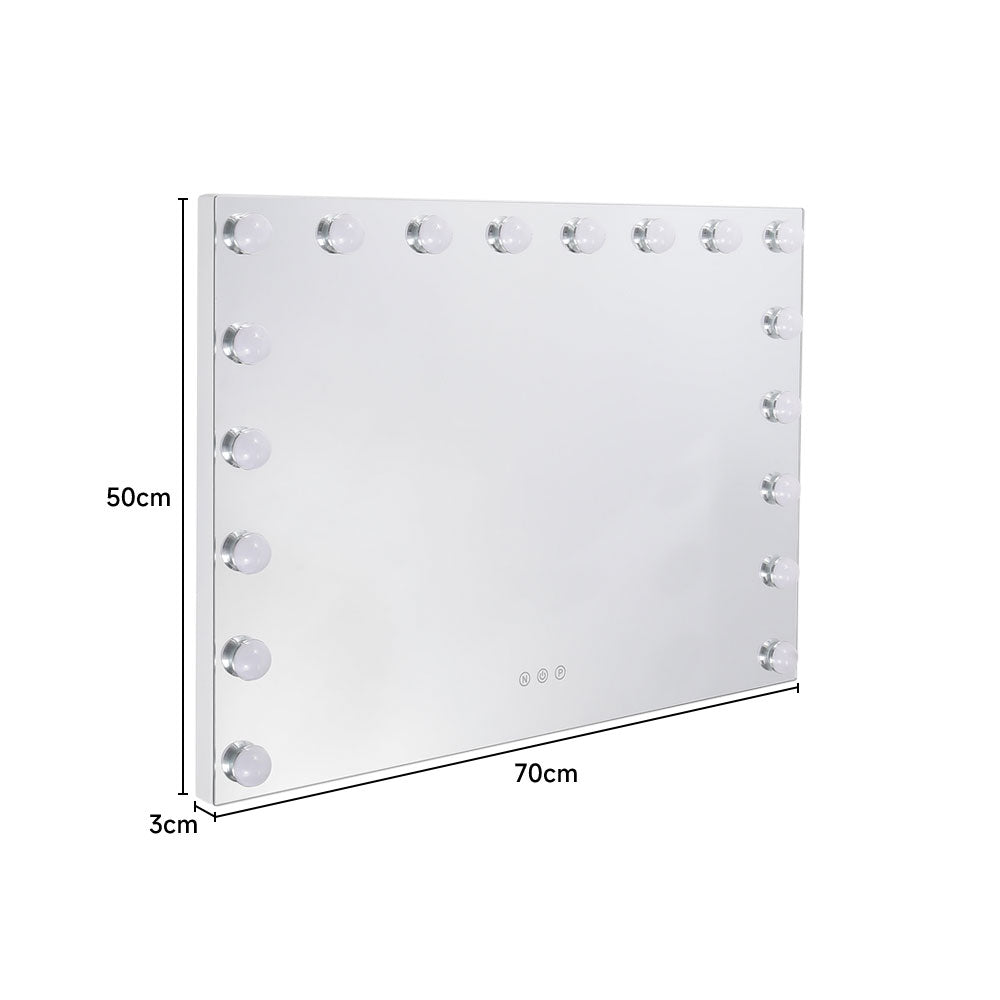 Dimmable LED Rectangle Hollywood Vanity Mirror 18 Bulbs 70 x 50 cm