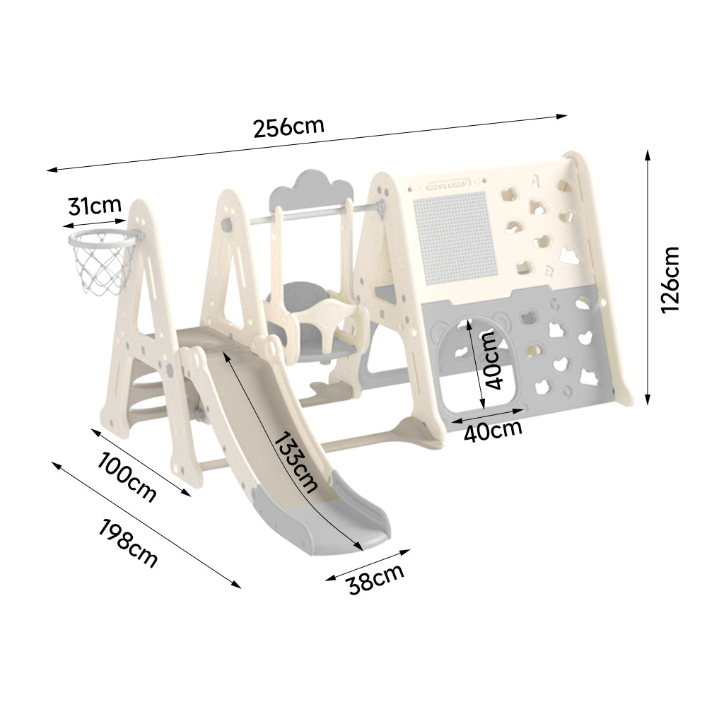 Grey 8 in 1 Toddler Swing and Slide Set with Building Block Baseplate