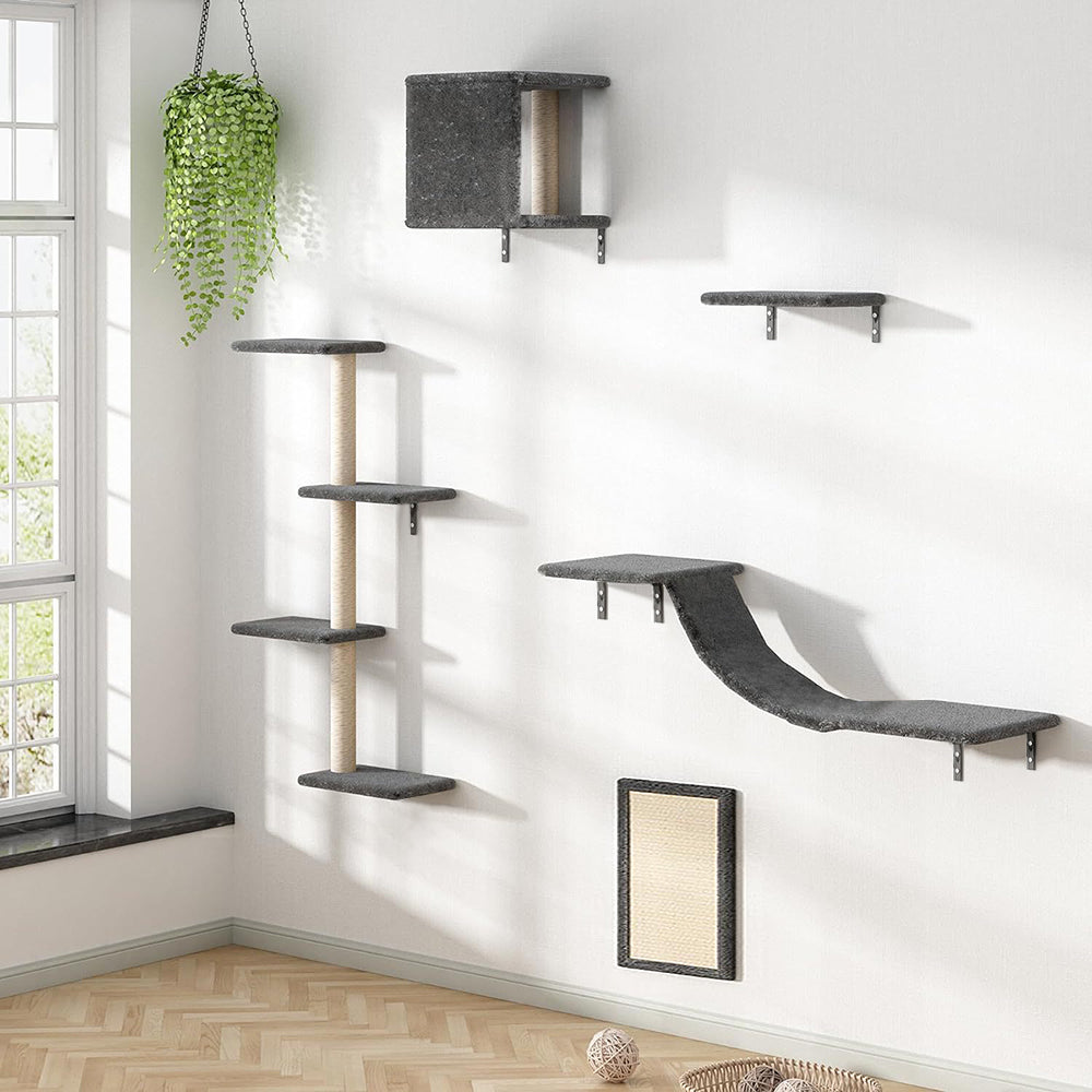Grey Cat Tree Set with Hammock and Jumping Platform