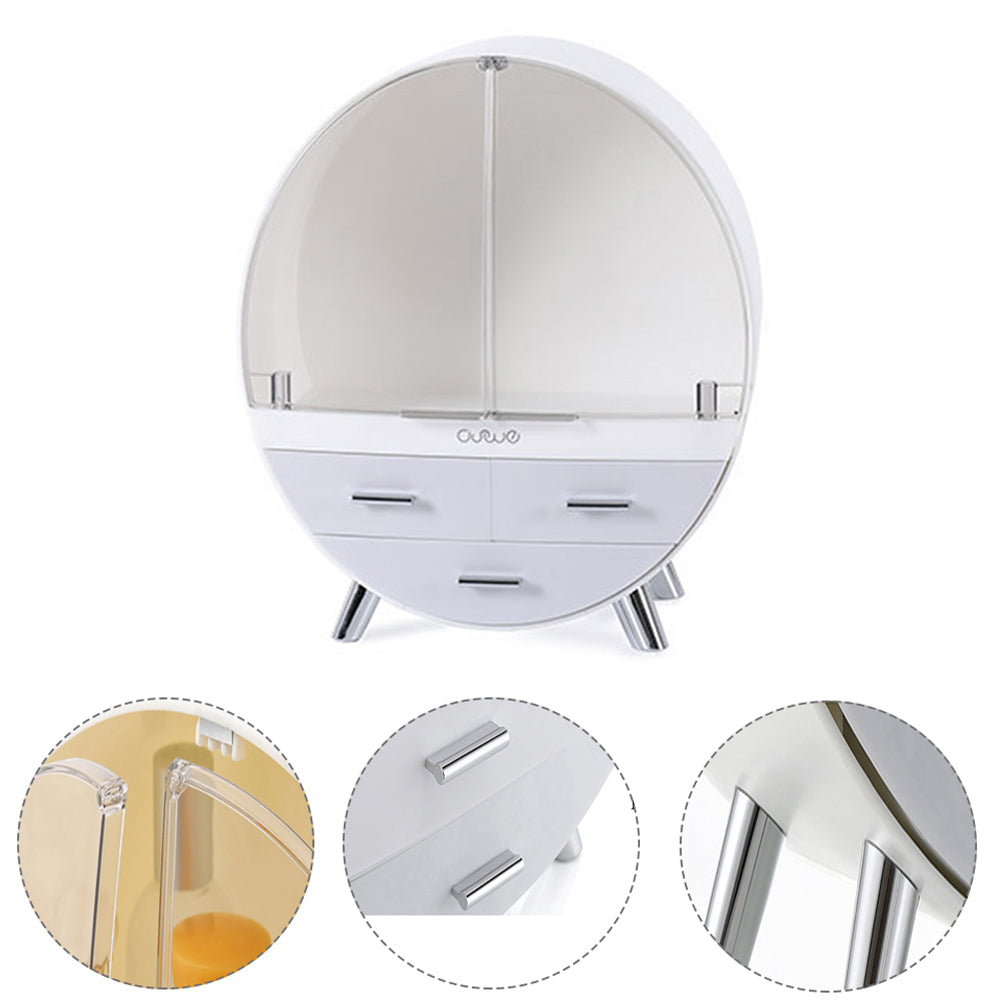 Grey Cosmetic Organizer Vanity Storage Case with Drawers and Stand