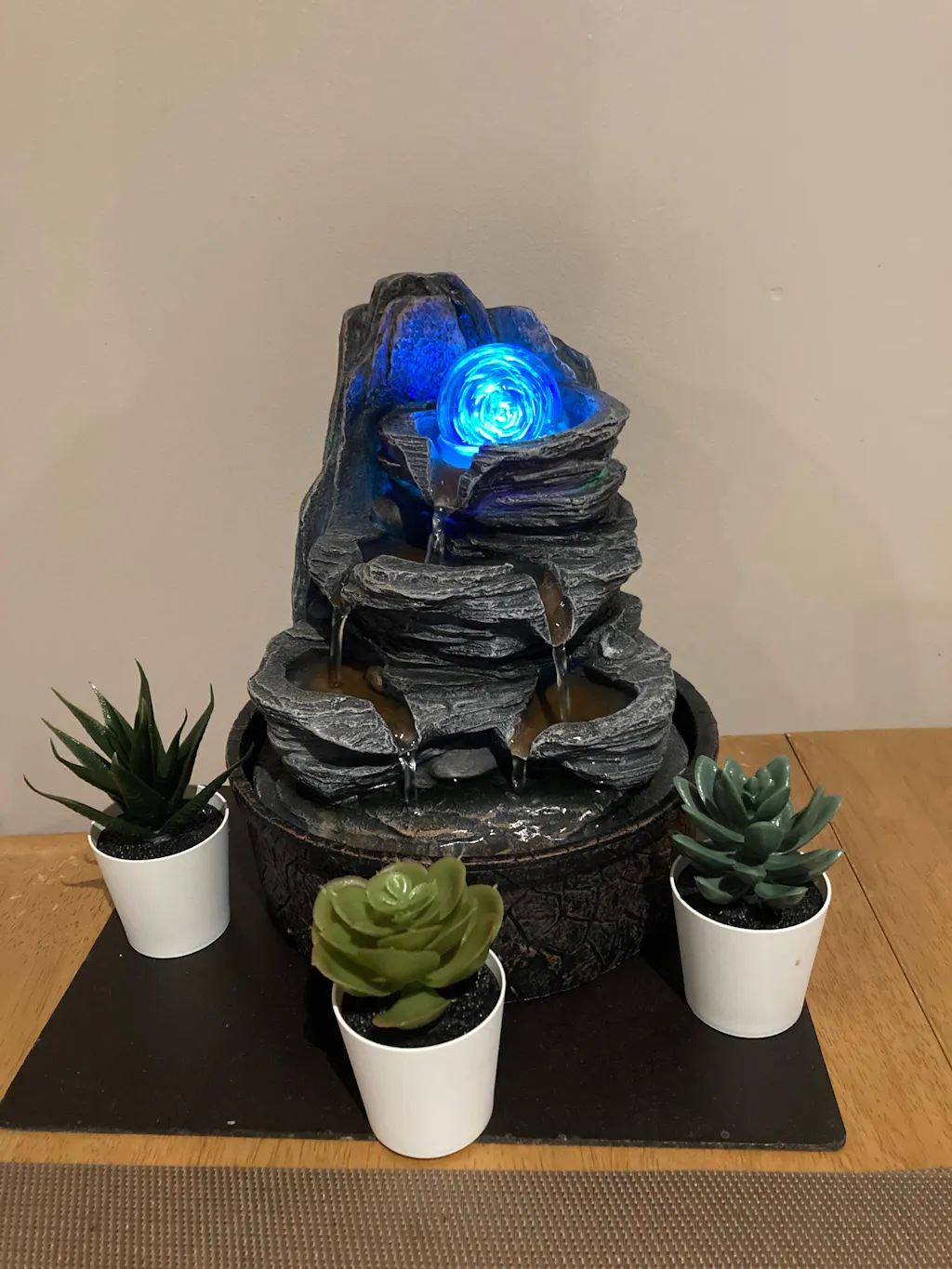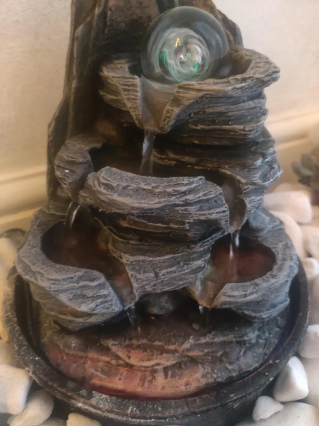 Layered Rock Cascading Tabletop Fountain with LED Crystal Ball