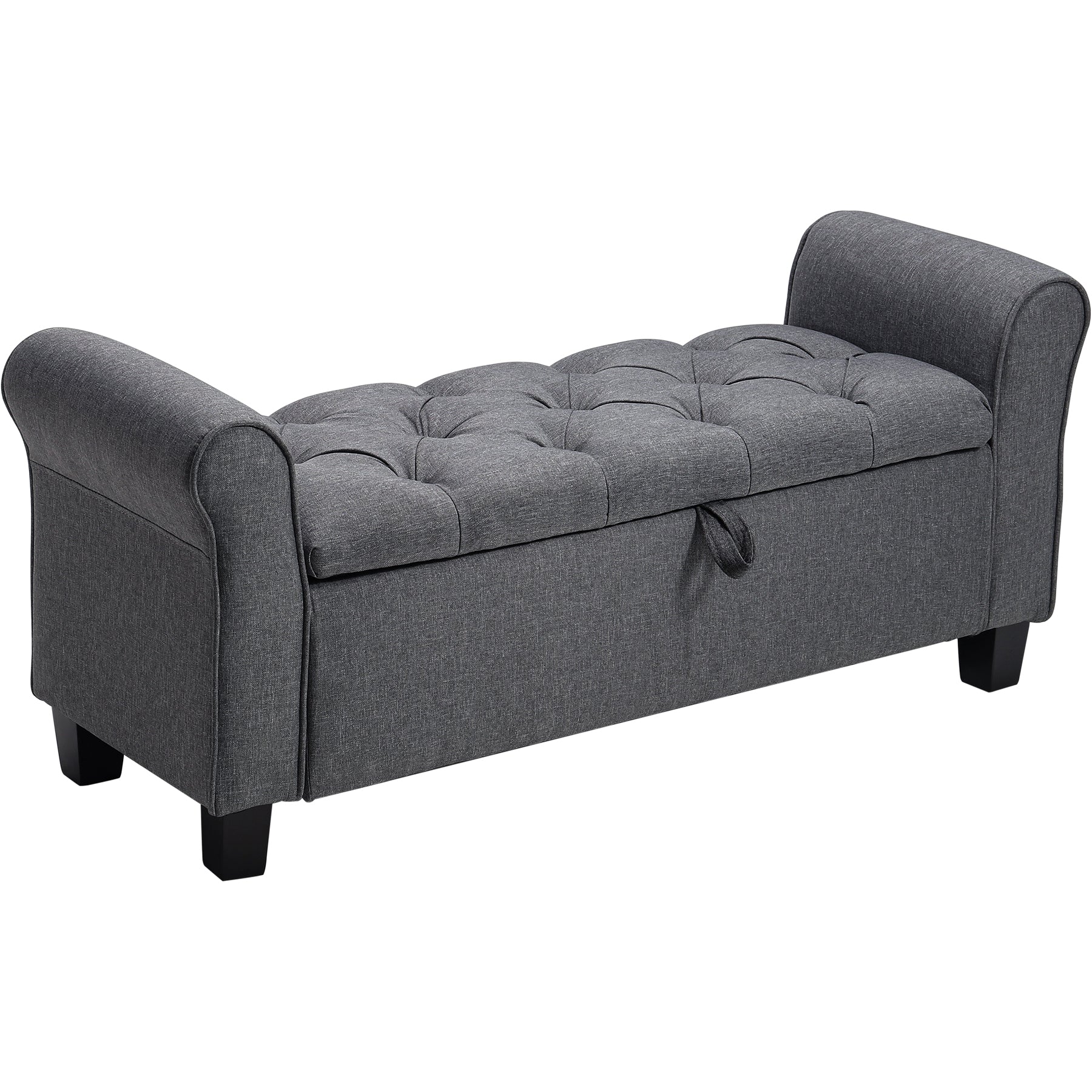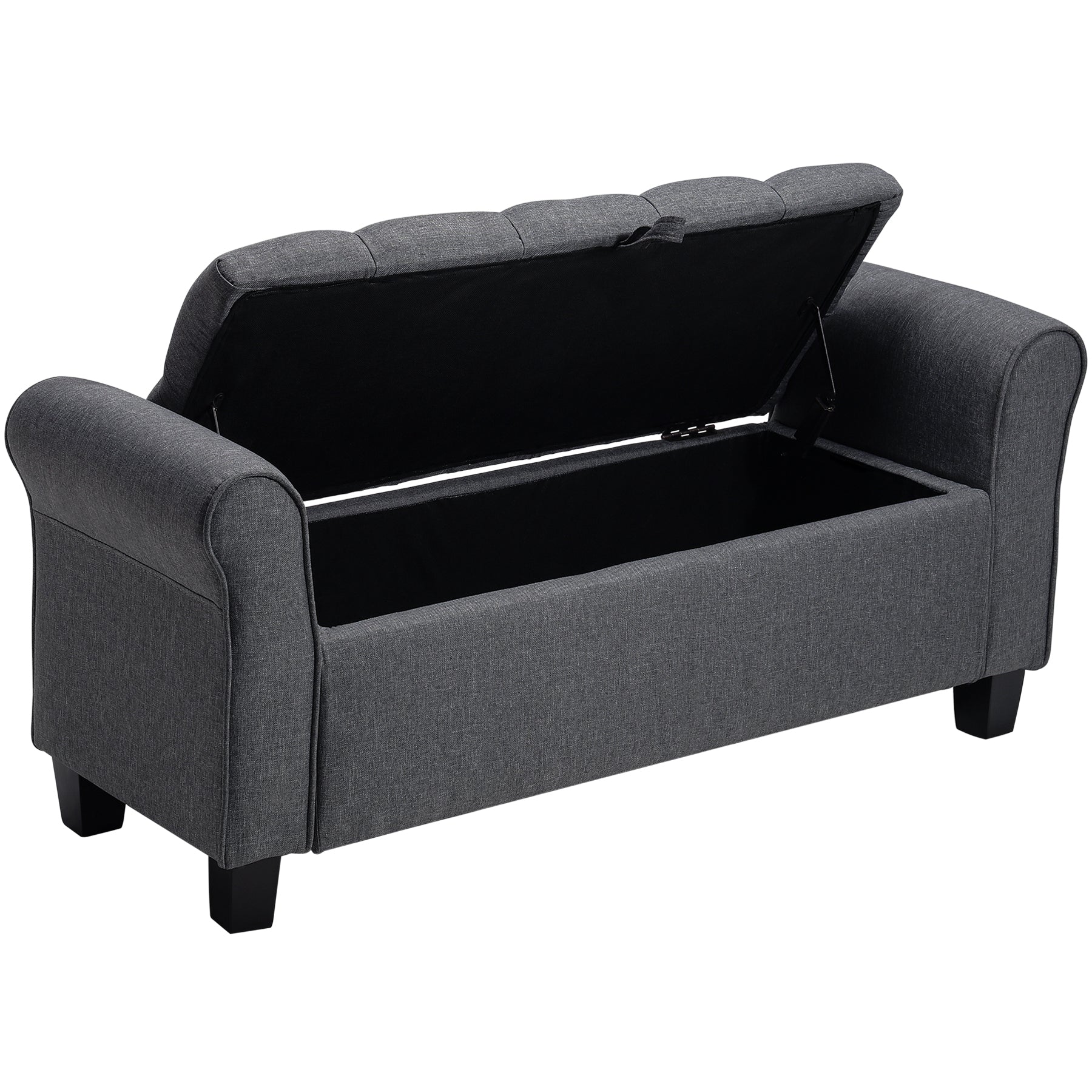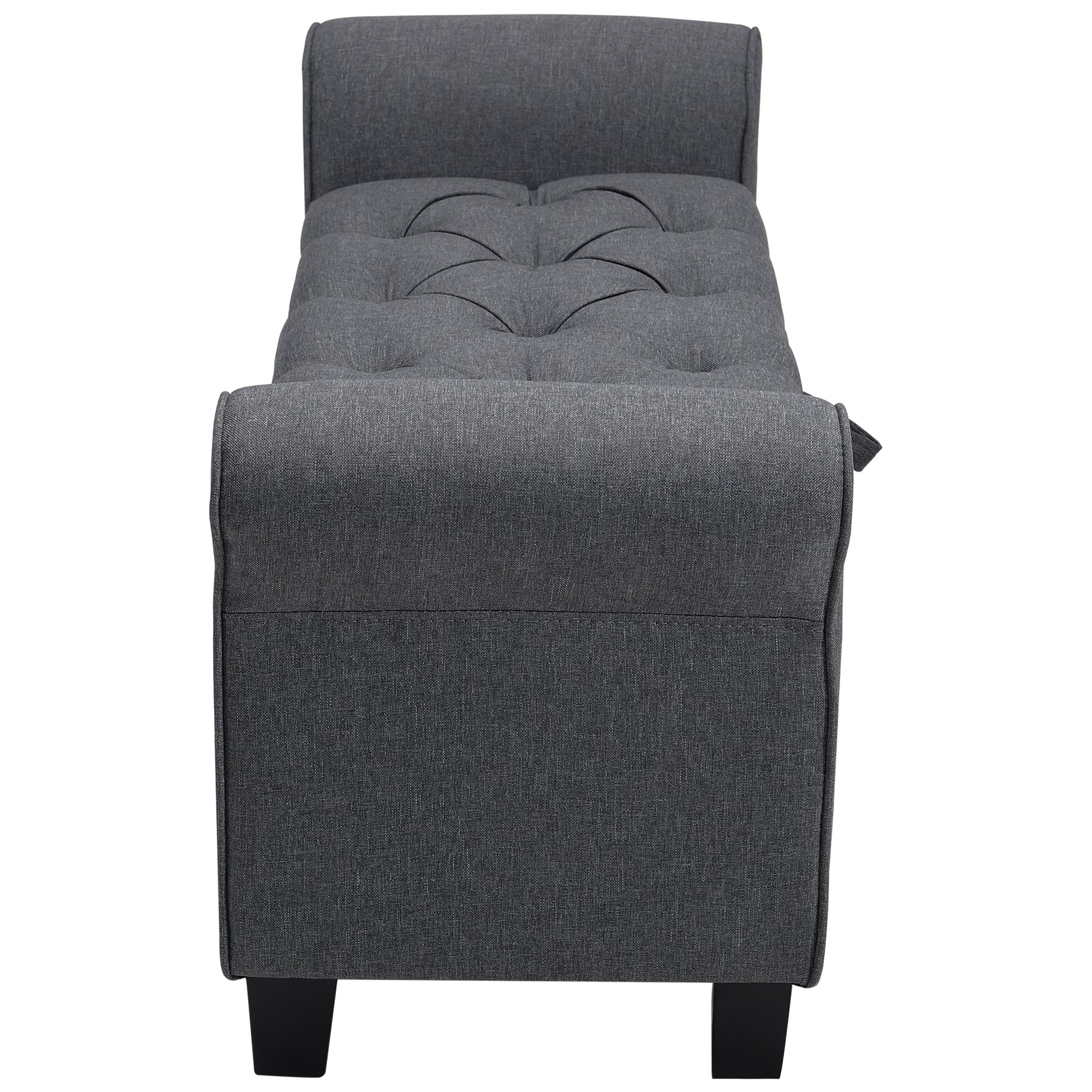 Linen Splayed Armrest Storage Ottoman Bench Chaise