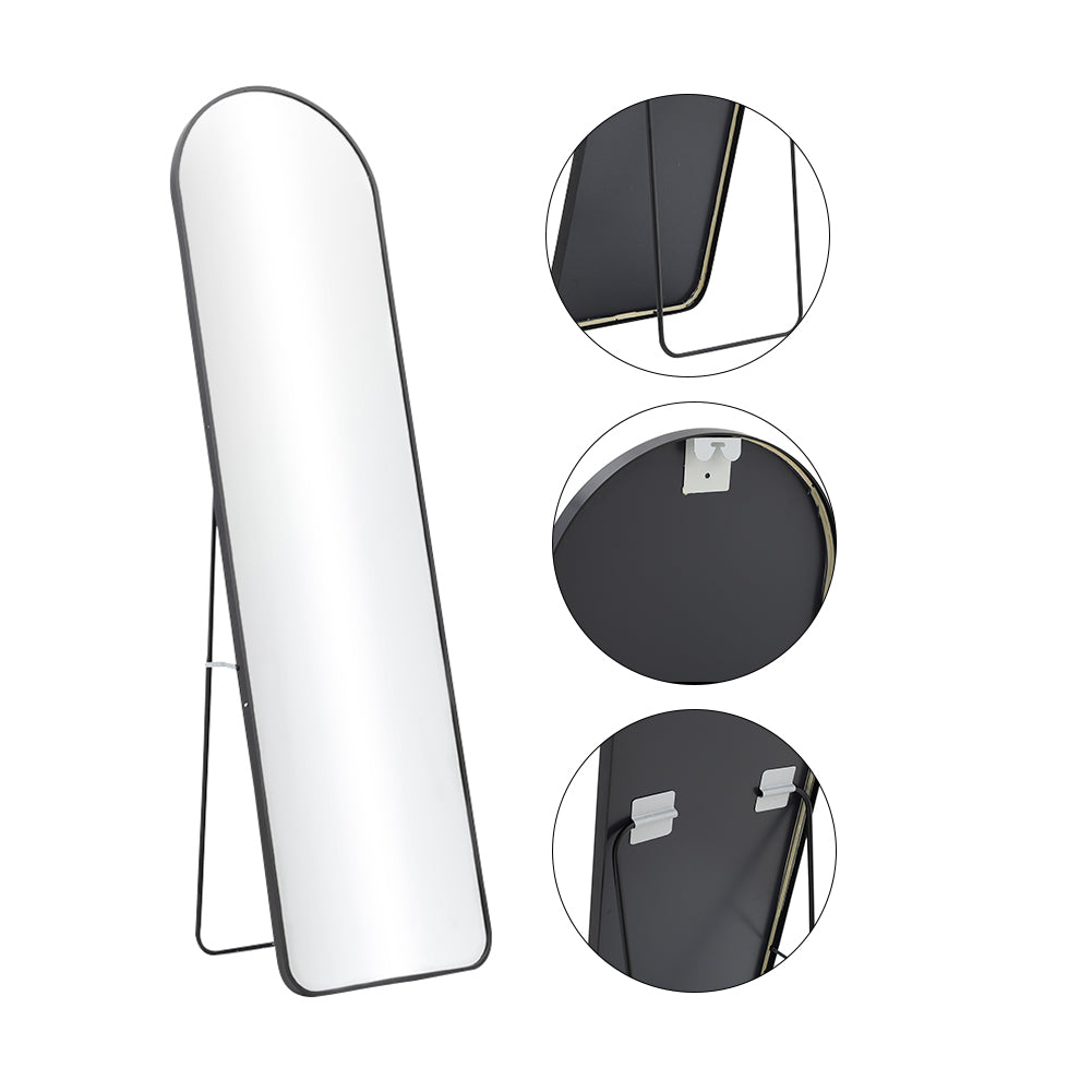150/160cm H Modern Arched Metal Floor Mirror Black