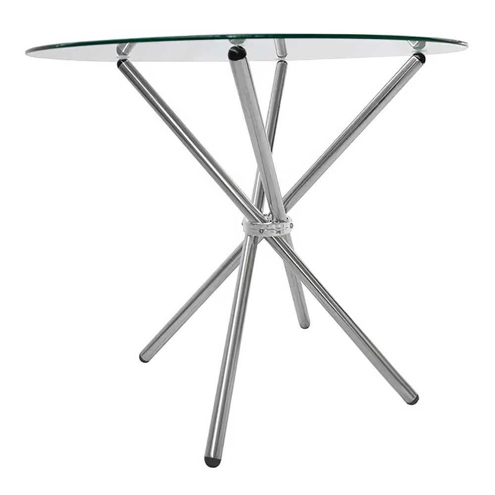 Tempered Glass Crossover Round Dining Table with 4 Chrome Legs
