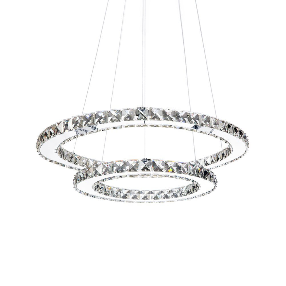 Modern 2-Tier Adjustable Crystal LED Pendant Light