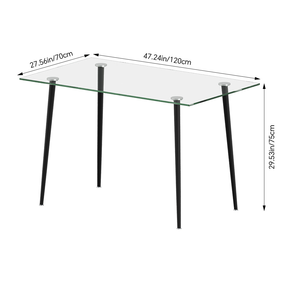 Modern Dining Table with Tempered Glass Tabletop & Metal Legs