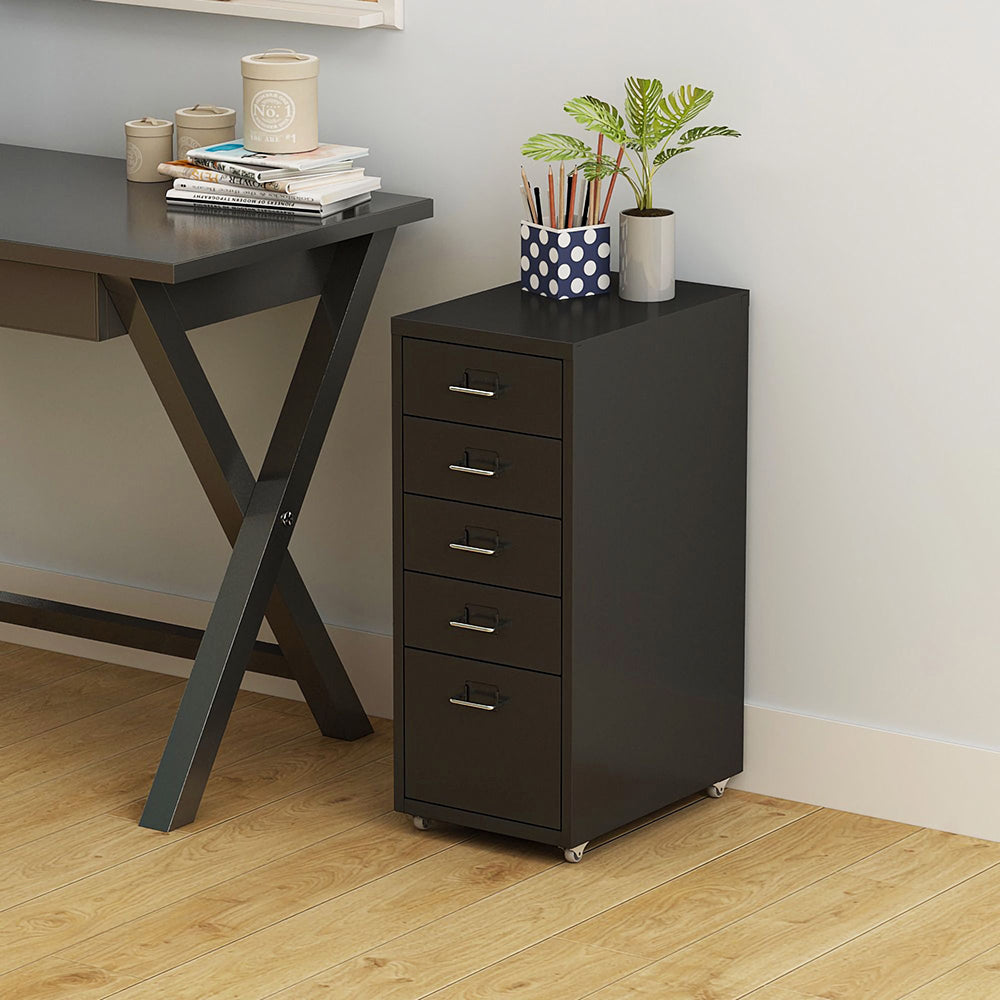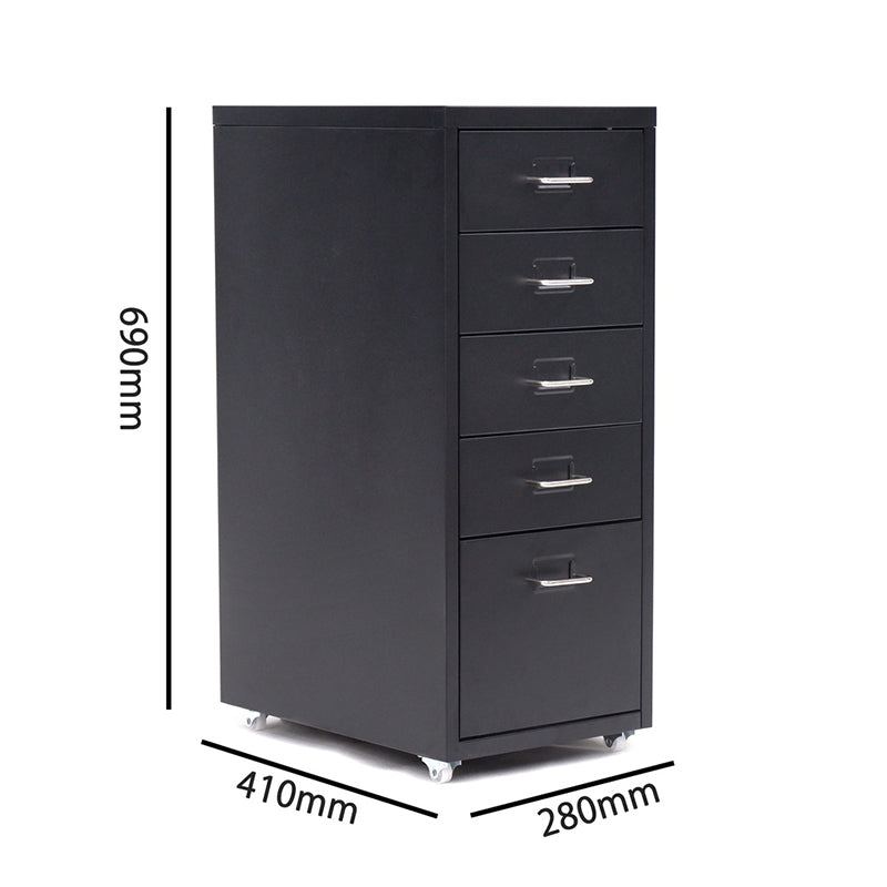 Office Rolling File Cabinet with 5 Drawers Shelf and Wheels, Black