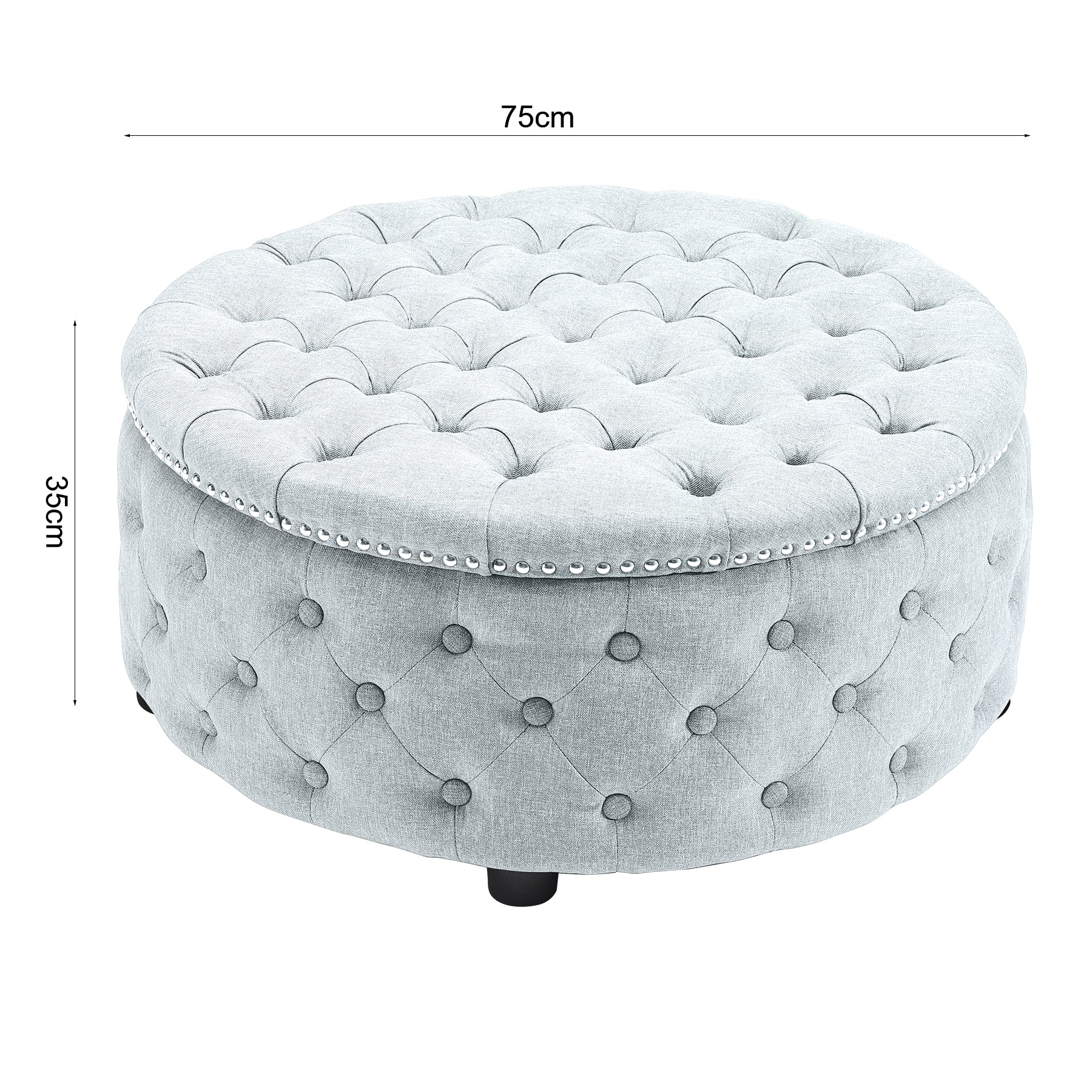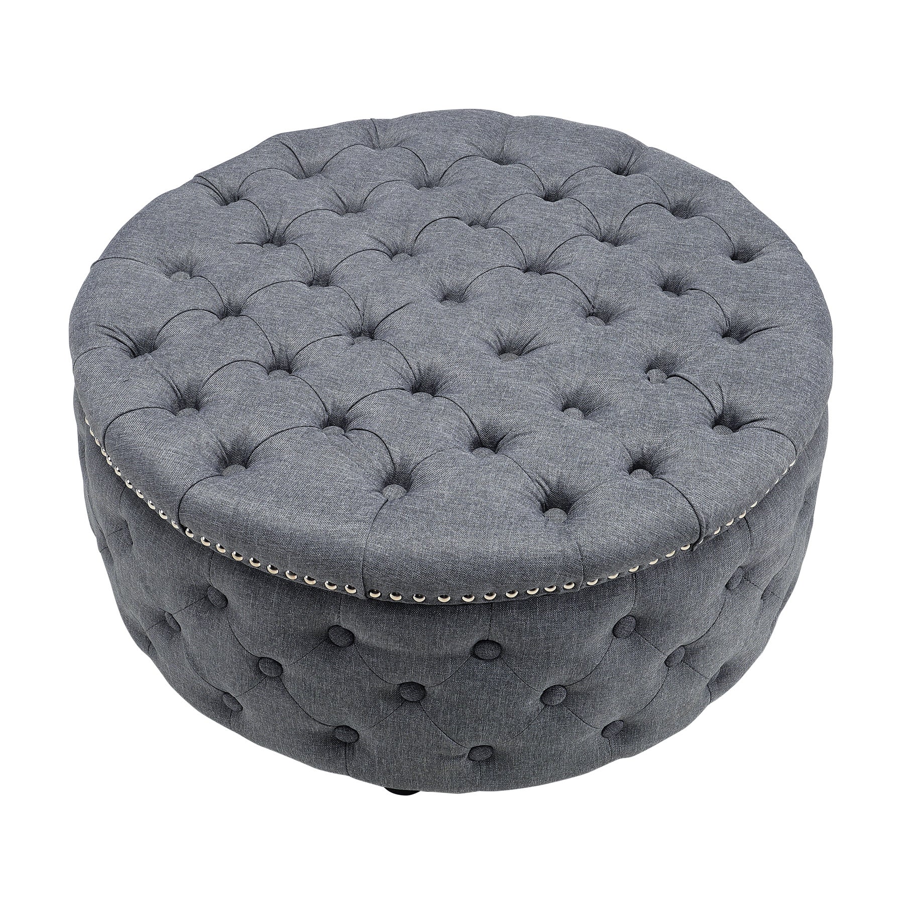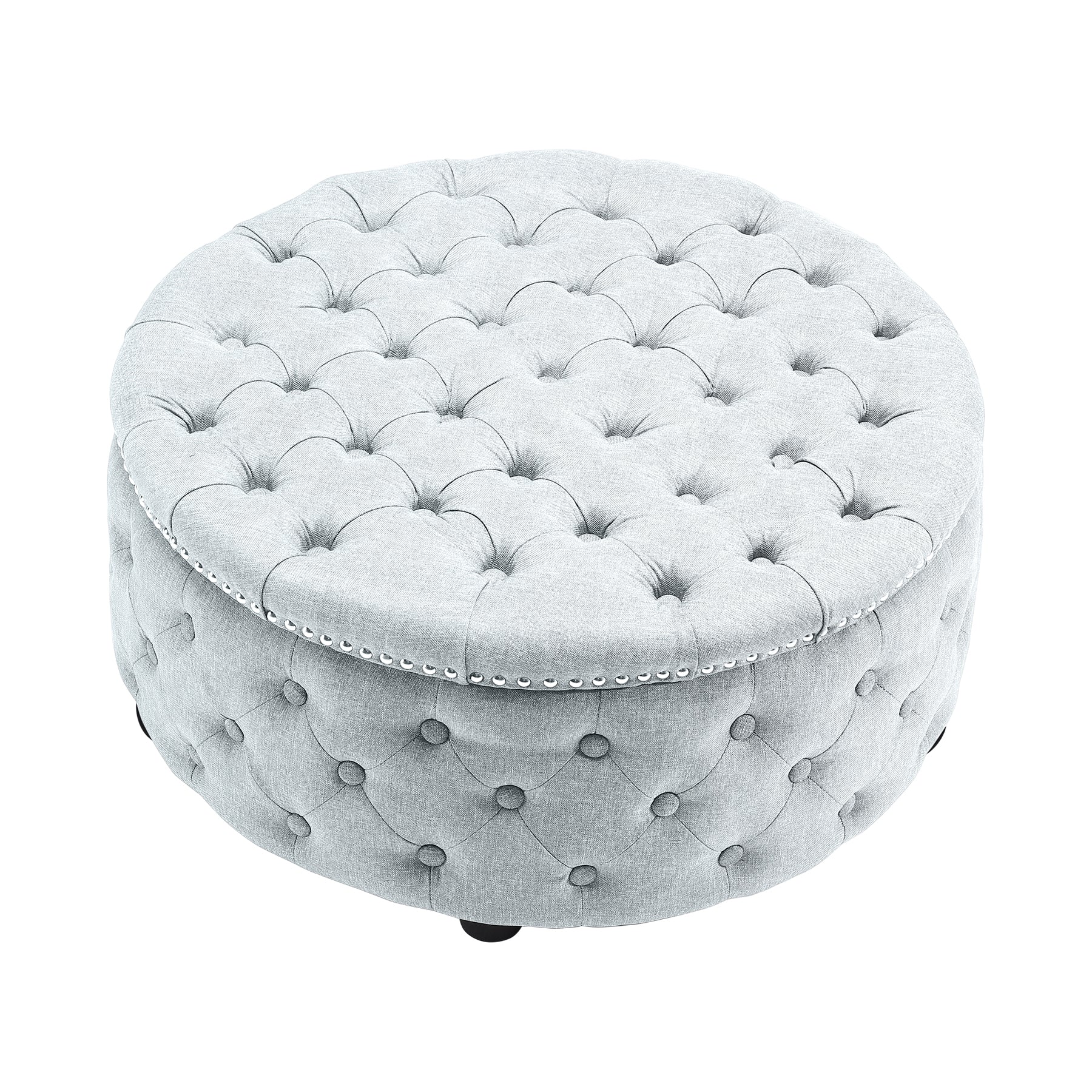 Round Chesterfield Linen Sturdy Footstool with Buttoned Edge