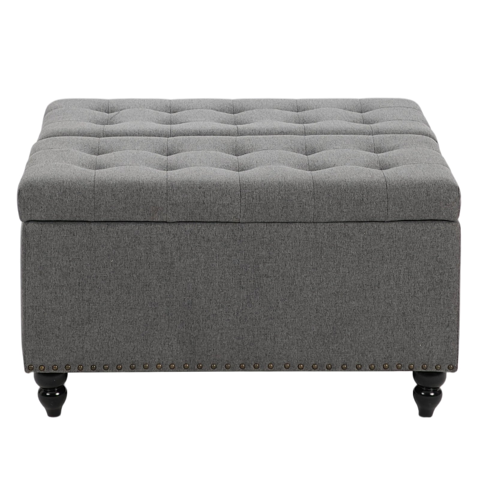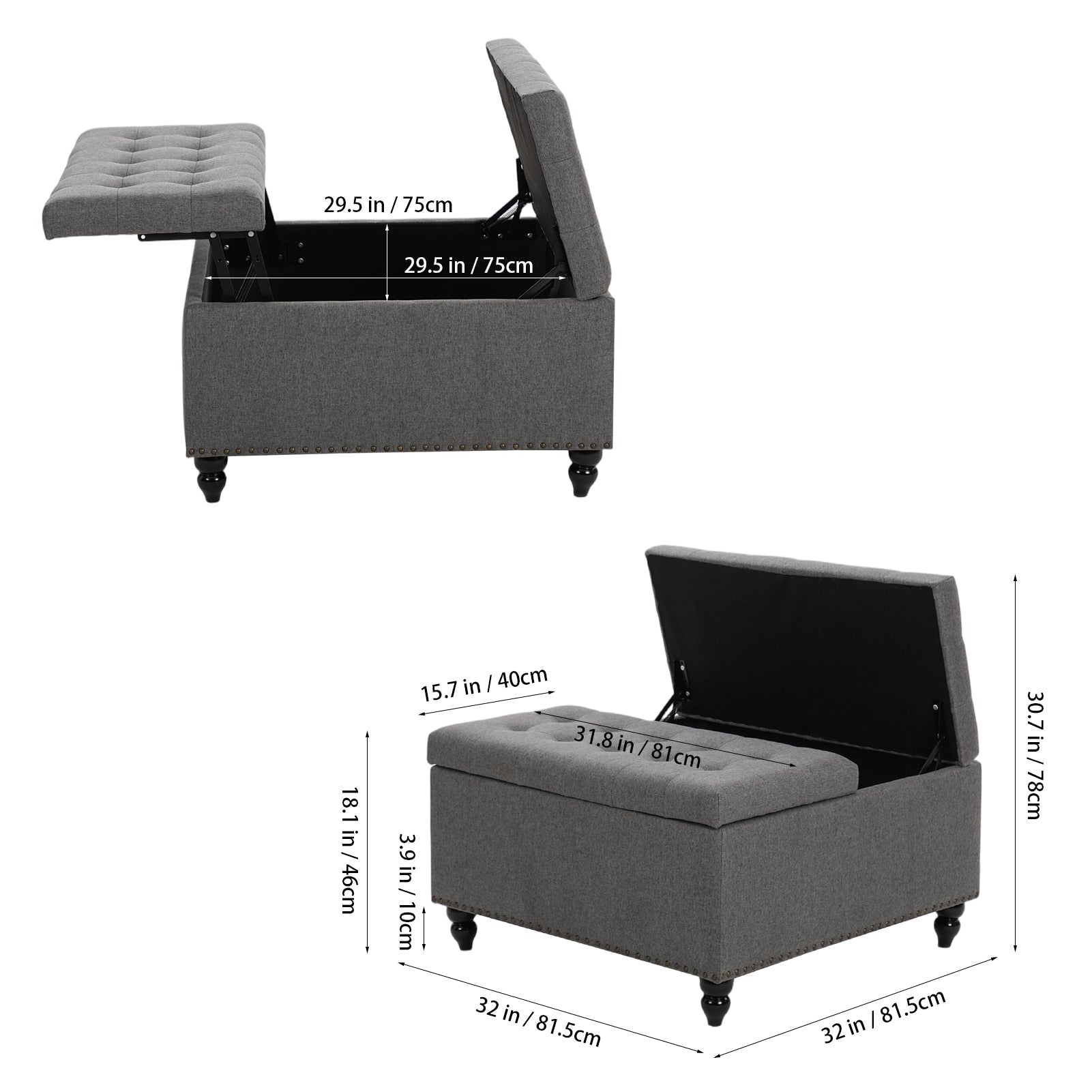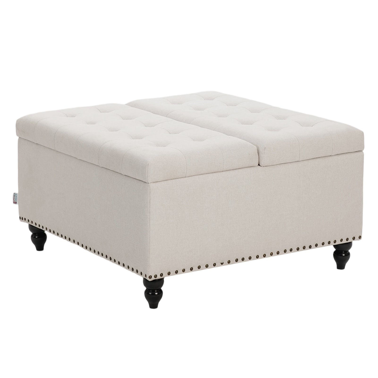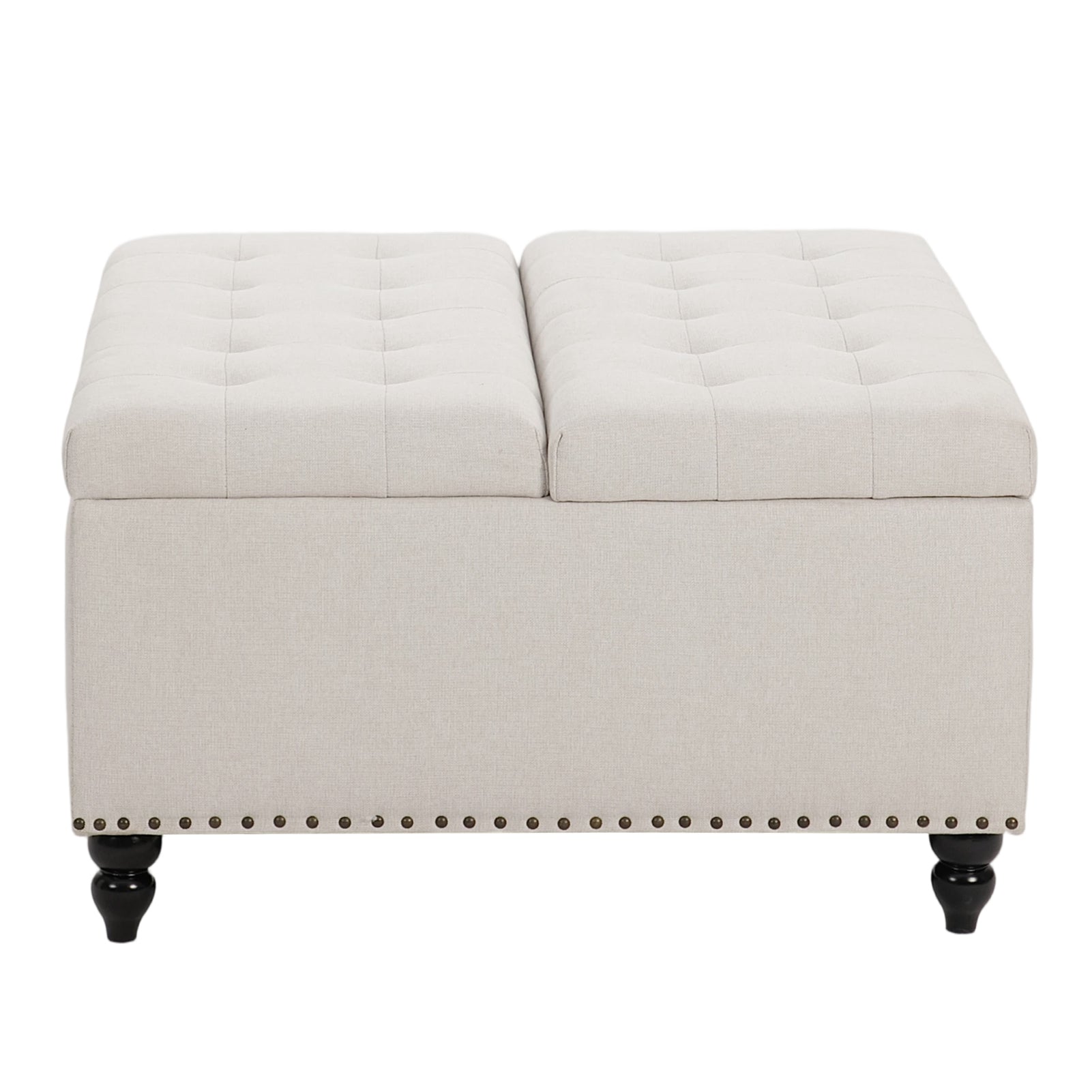 Square Linen Upholstered Storage Ottoman with Lift-Top & Flip Design