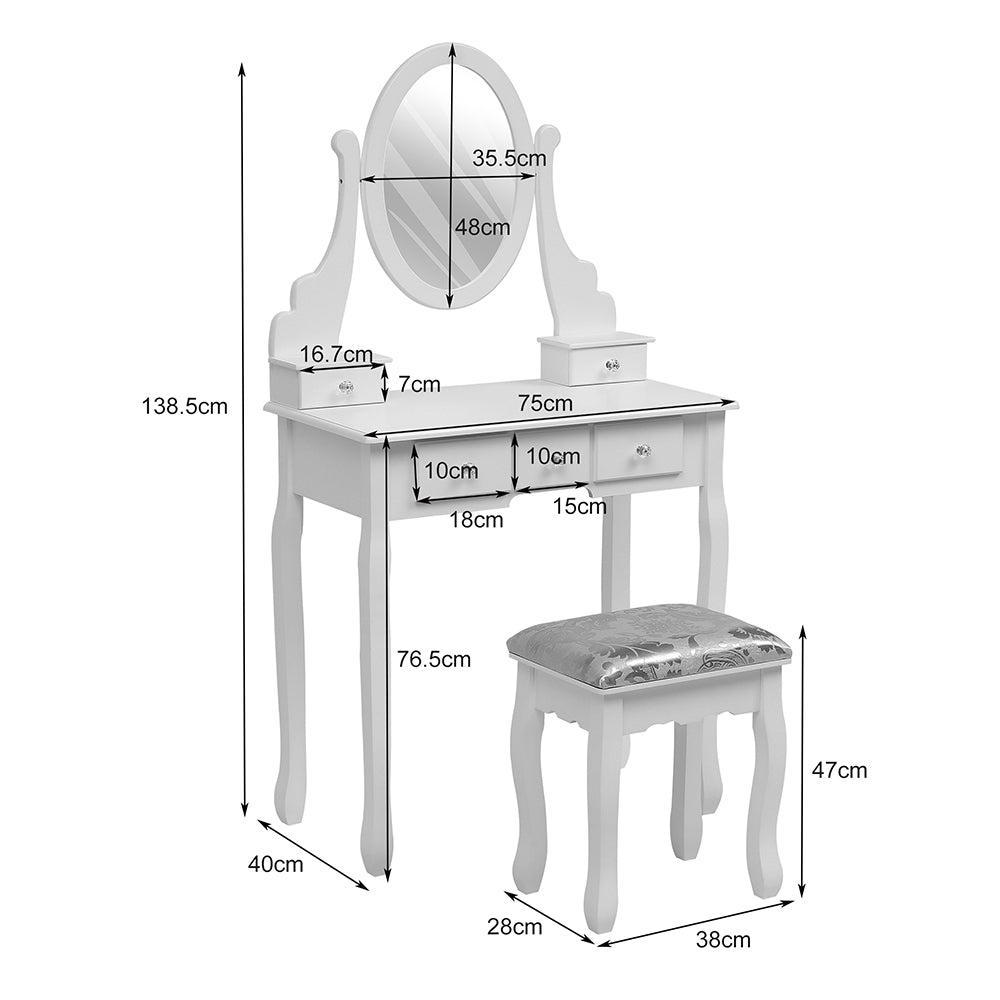 White 75cm Makeup Vanity Desk with Mirror and Stool