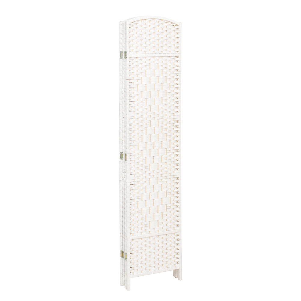 White Solid Weave Wicker Wood Room Divider 4 Panel 160×170cm