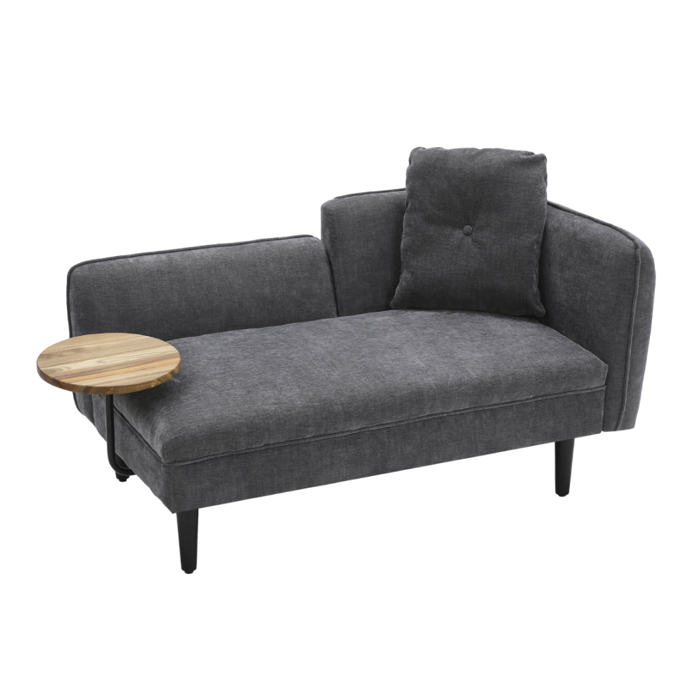 Grey 143cm W Linen Chaise Lounge with Tray Table